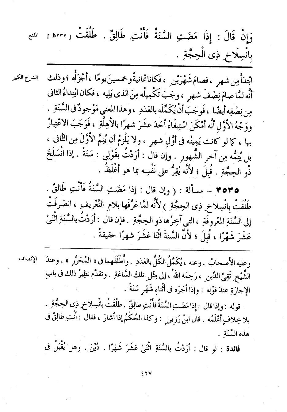 قوله: وإذا قال: إذا مَضَتِ السَّنَةُ فأنْتِ طالِقٌ. طلُقَتْ بانْسِلاخِ ذِي الحِجَّةِ. بلا خِلافٍ أعْلَمُه. قال ابنُ رَزِينٍ: وكذا الحُكْمُ إذا أشارَ، فقال: أنْتِ طالِقٌ في هذه السَّنَةِ.