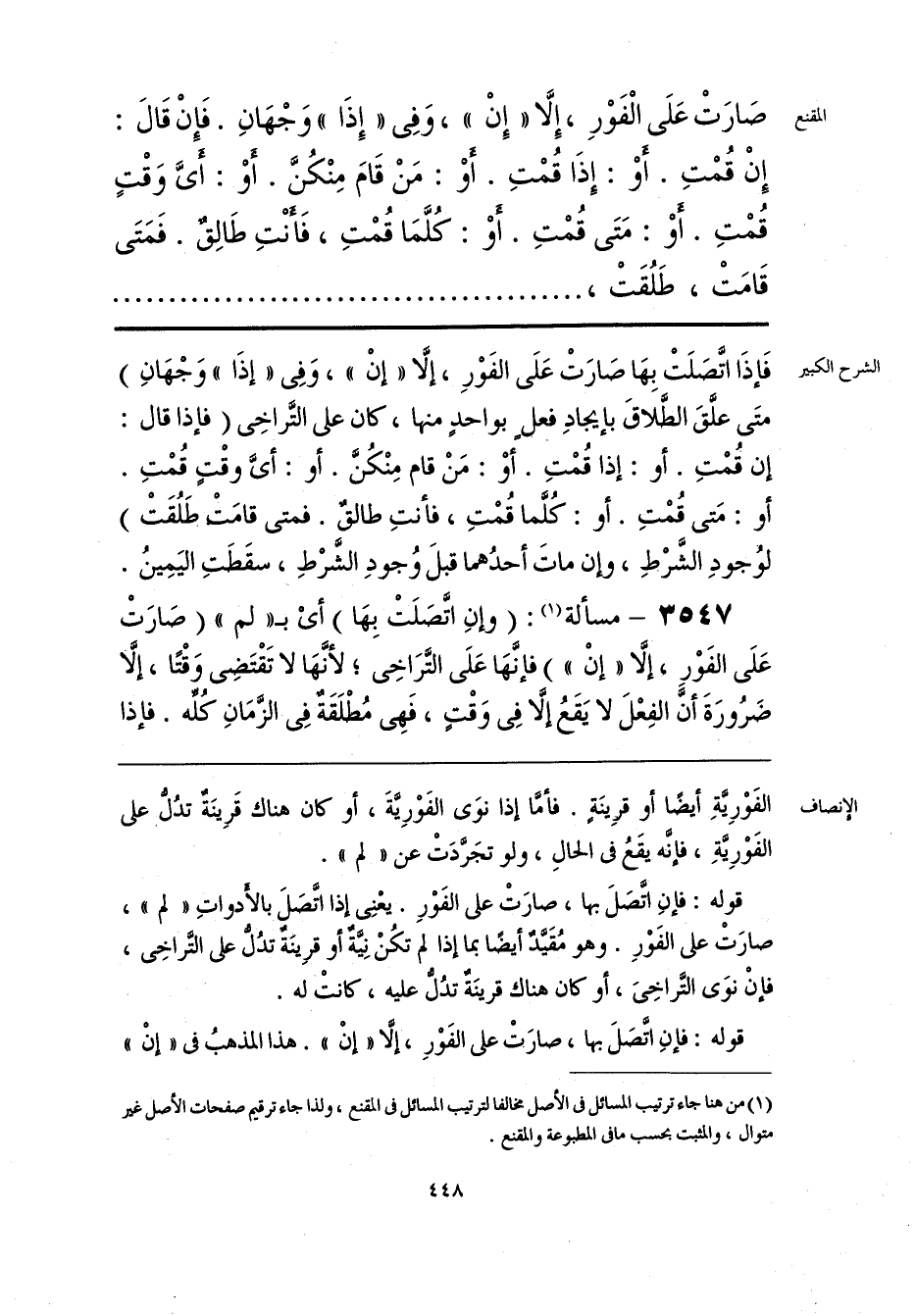 قوله: فإنِ اتَّصَلَ بها، صارَتْ على الفَوْرِ. يعْنِي إذا اتَّصَل بالأَدواتِ «لم»، صارَتْ على الفَوْرِ. وهو مُقَيَّدٌ أيضًا بما إذا لم تكُنْ نِيَّةٌ أو قرِينَةٌ تدُلُّ على التَّراخِي، فإنْ نوَى التَّراخِيَ، أو كان هناك قرينَةٌ تدُلُّ عليه، كانتْ له.