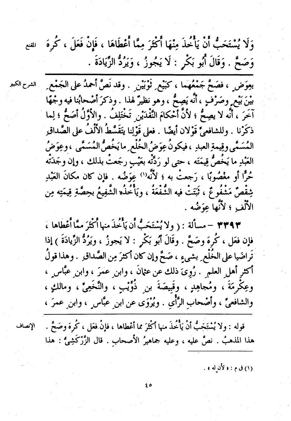 قوله: ولا يُسْتَحَبُّ أَنْ يَأْخُذَ منها أكْثَرَ مما أعْطاها، فإنْ فعَل، كُرِهَ وصَحَّ. هذا المذهبُ. نصَّ عليه، وعليه جماهيرُ الأصحابِ. قال الزَّرْكَشِىُّ: هذا