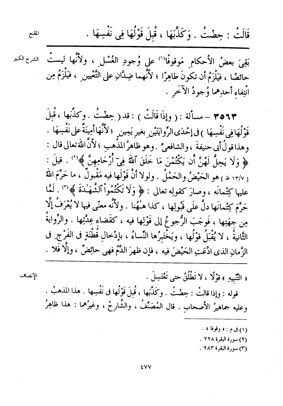 قوله: وإذا قالتْ: حِضْتُ. وكَذَّبَها، قُبِلَ قَوْلُها في نَفْسِها. هذا المذهبُ. وعليه جماهيرُ الأصحابِ. قال المُصَنِّفُ، والشَّارِحُ، وغيرُهما: هذا ظاهِرُ
