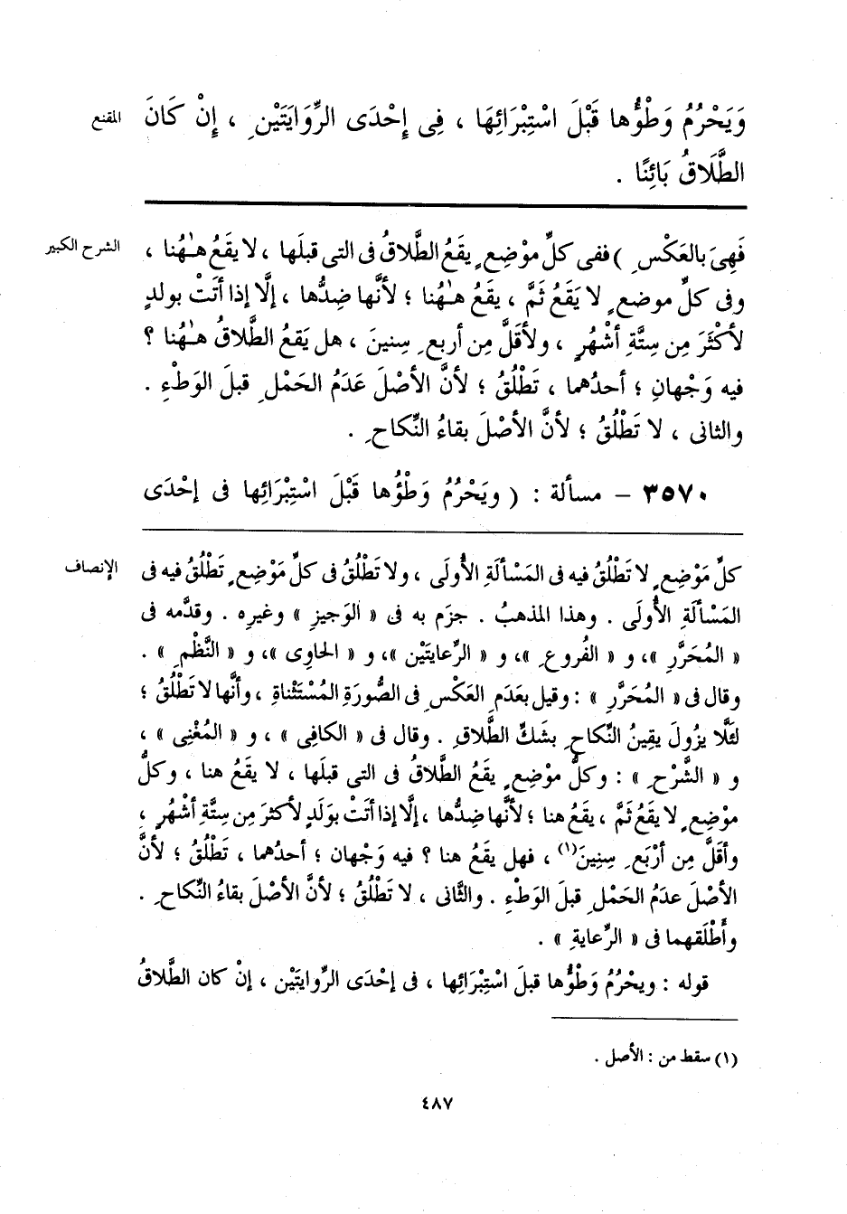 قوله: ويحْرُمُ وَطْؤُها قبلَ اسْتِبْرَائِها، في إحْدَى الرِّوايتَين، إنْ كان الطَّلاقُ
