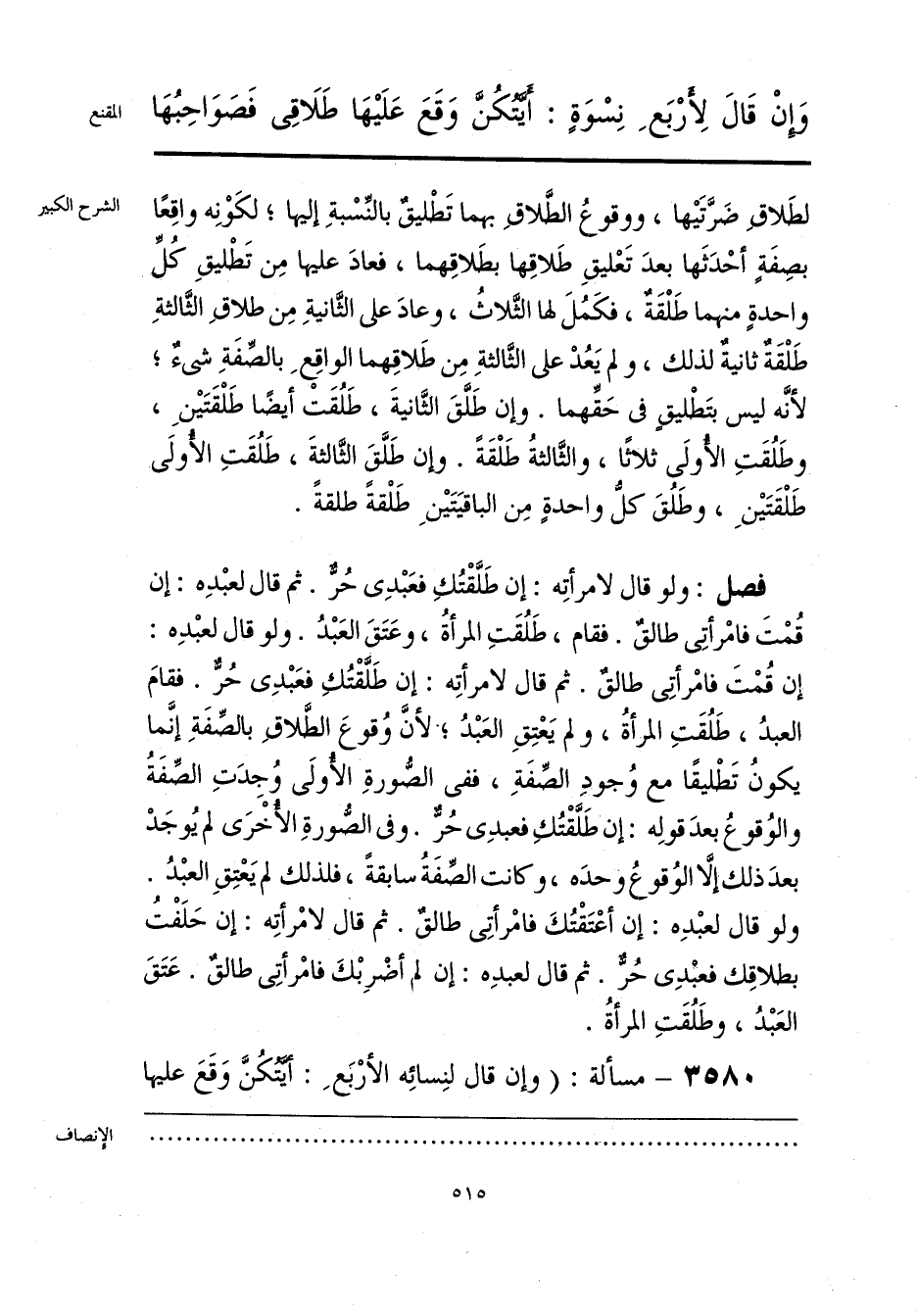 وَإنْ قَال لأرْبَعِ نِسْوَةٍ: أيَّتُكُنَّ وَقَعَ عَلَيهَا طَلَاقِي فَصَوَاحِبُهَا