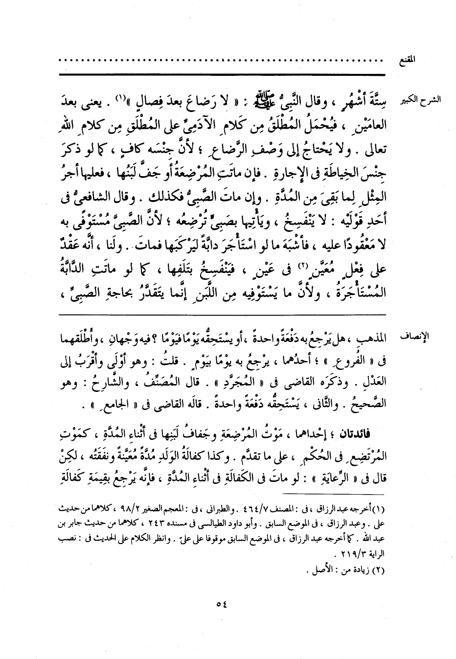فائدتان؛ إحْداهما، مَوْتُ المُرْضِعَةِ وجَفافُ لَبَنِها فى أثْناءِ المُدَّةِ، كمَوْتِ المُرْتَضِعِ فى الحُكْمِ، على ما تقدَّم. وكذا كفالَةُ الوَلَدِ مُدَّةً مُعَيَّنةً ونفَقَتُه، لكِنْ قال فى «الرِّعايَةِ»: لو ماتَ فى الكَفالَةِ فى أثْناءِ المُدَّةِ، فإنَّه يَرْجِعُ بقِيمَةِ كَفالَةِ