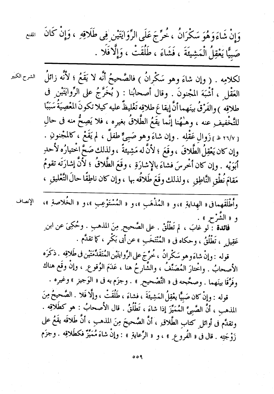 قوله: وإنْ شاءَ وهو سَكْرانُ، خُرِّجَ على الرِّوايتَين المُتَقَدِّمَتَين في طَلاقِه. ذكَرَه الأصحابُ. واخْتارَ المُصَنِّفُ، والشَّارِحُ هنا، عَدَمَ الوُقوعَ، وإنْ وقَع هناك وفَرَّقَا بينَهما. وصحَّحه في «التَّصحيحِ». وجزَم به في «الوَجيزِ» وغيرِه.