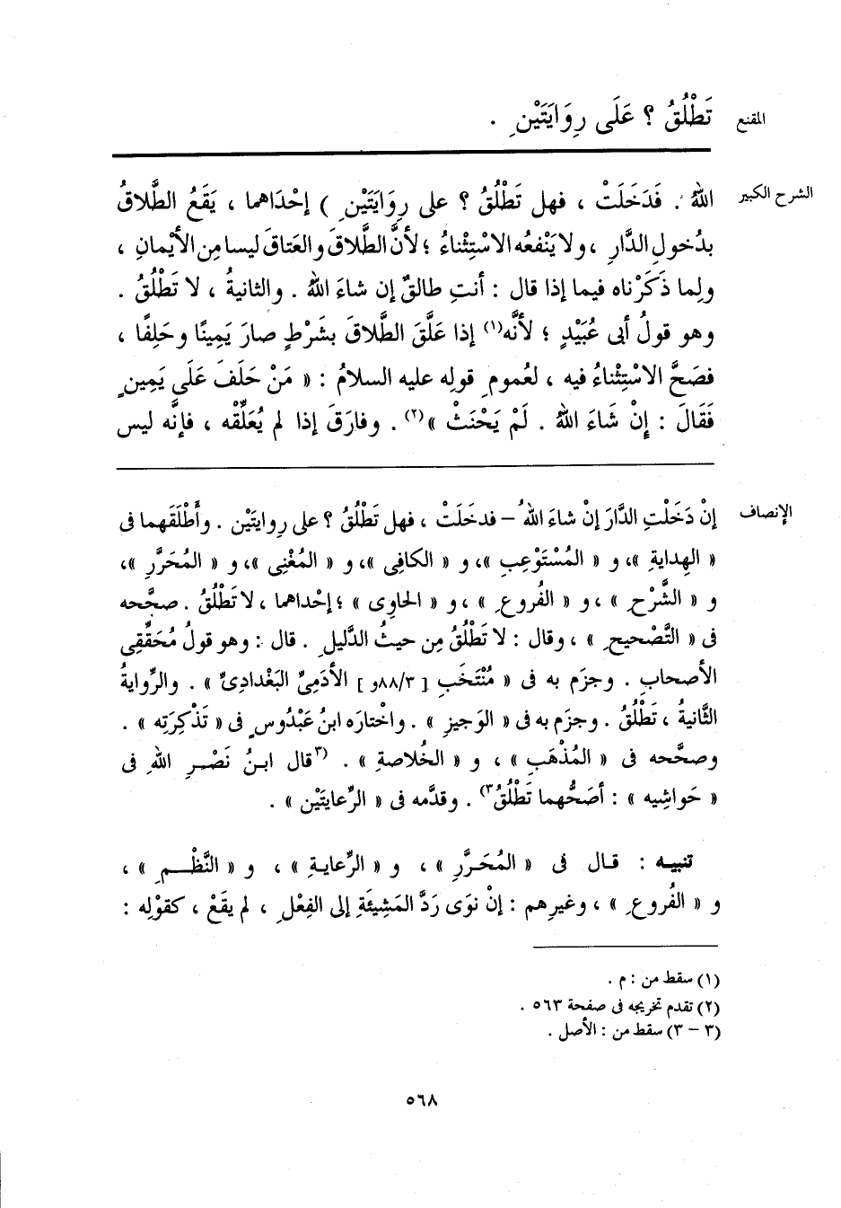 إنْ دَخَلْتِ الدَّارَ إنْ شاءَ اللهُ- فدخَلَتْ، فهل تَطْلُقُ؟ على رِوايتَين. وأطْلَقَهما في «الهِدايةِ»، و «المُسْتَوْعِبِ»، و «الكافِي»، و «المُغْنِي»، و «المُحَرّر»، و «الشرْح»، و «الفُروعِ»، و «الحاوي»، إحْداهما، لا تَطْلُقُ. صحّحه في «التَّصْحيحِ»، وقال: لا تَطْلُقُ مِن حيثُ الدليلِ. قال: وهو قولُ مُحَقِّقِي الأصحابِ. وجزَم به في «مُنْتَخَبِ الأدَمِيِّ البَغْدادِيِّ». والرِّوايةُ الثانيةُ، تَطْلُقُ. وجزَم به في «الوَجيزِ». واخْتارَه ابنُ عَبْدُوس في «تَذْكِرَتِه». وصحَّحه في «المُذْهَبِ»، و «الخُلاصةِ». [قال ابنُ نَصْرِ اللهِ في «حَواشِيه»: أصَحهما تَطْلُقُ] (¬1). وقدمه في «الرِّعايتَين».