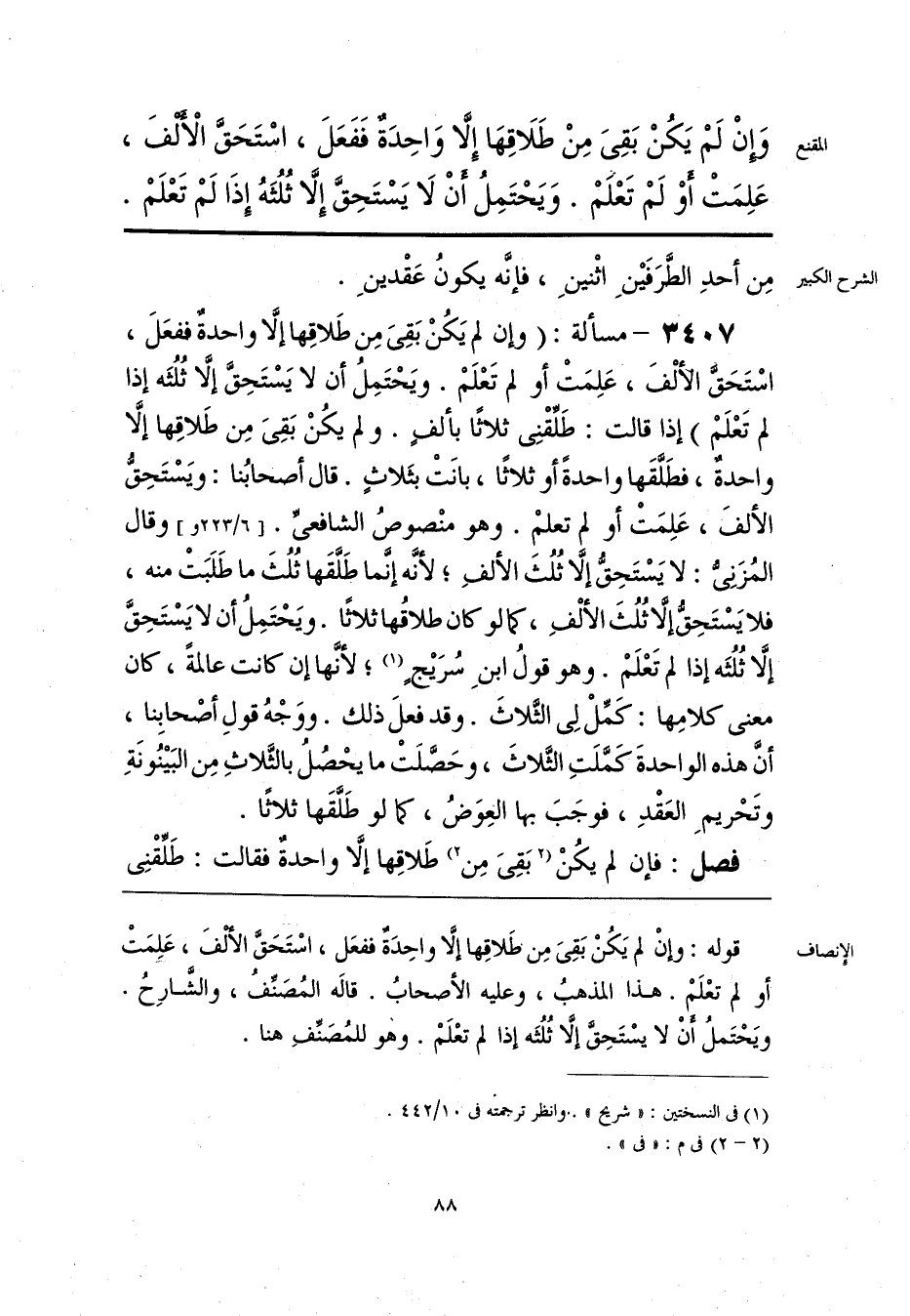قوله: وإنْ لم يَكُنْ بَقِىَ مِنْ طَلاقِها إلَّا واحِدَةٌ ففعَل، اسْتَحَقَّ الألْفَ، عَلِمَتْ أو لم تعْلَمْ. هذا المذهبُ، وعليه الأصحابُ. قالَه المُصَنِّفُ، والشَّارِحُ. ويَحْتَملُ أَنْ لا يسْتَحِقَّ إلَّا ثُلُثَه إذا لم تعْلَمْ. وهو للمُصَنِّفِ هنا.