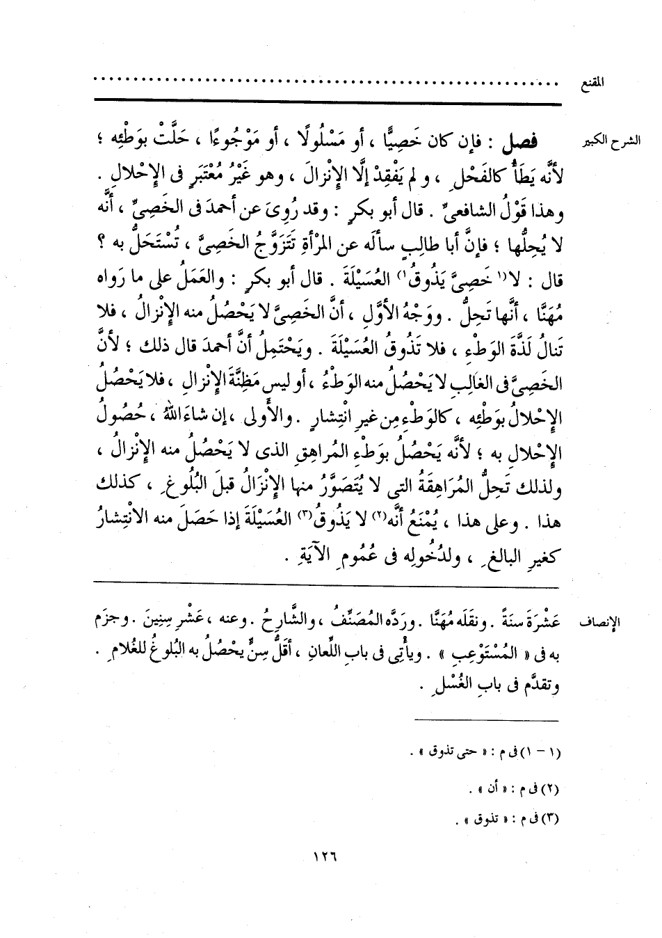 عَشْرَةَ سنَةً. ونقَلَه مُهَنَّا. ورَدَّه المُصَنِّفُ، والشَّارِحُ. وعنه، عَشْرِ سِنِينَ. وجزَم به في «المُسْتَوْعِبِ». ويأْتِي في بابِ اللِّعانِ، أقَلُّ سِنٍّ يحْصُلُ به البُلوغُ للغُلامِ. وتقدَّم في بابِ الغُسْلِ.