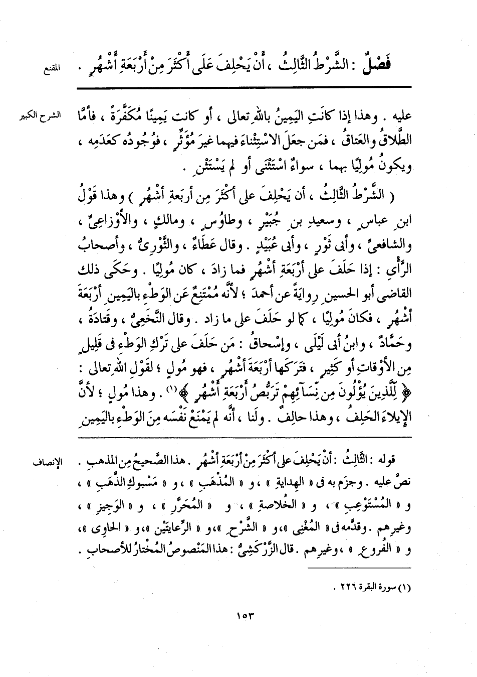 فَصْل: الشَّرْطُ الثَّالِثُ، أنْ يَحْلِفَ عَلَى أكْثَرَ مِنْ أرْبَعَةِ أشْهُر.