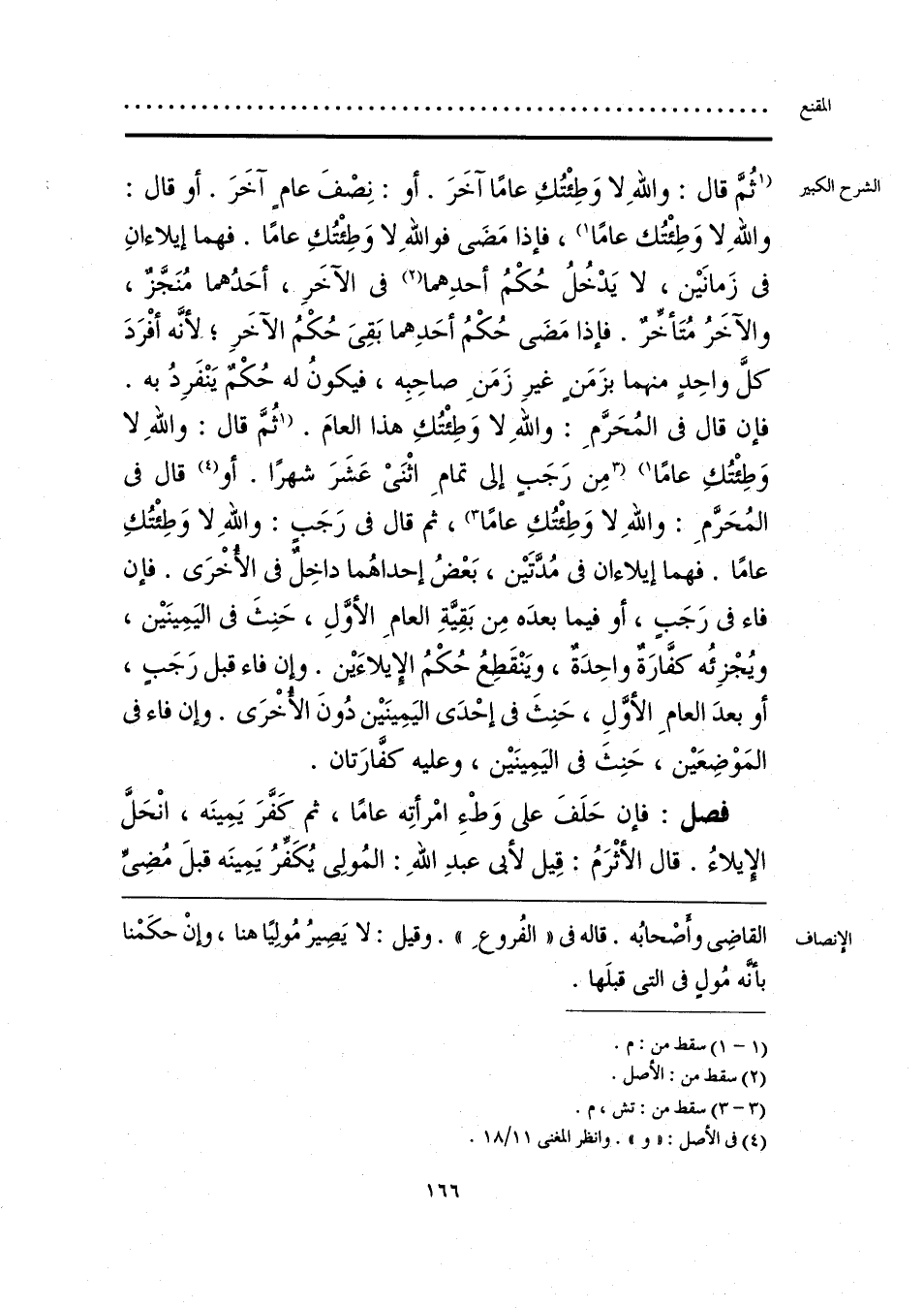 القاضِي وأصْحابُه. قاله في «الفُروعِ». وقيل: لا يَصِيرُ مُولِيًا هنا، وإنْ حكَمْنا بأنَّه مُولٍ في التي قبلَها.