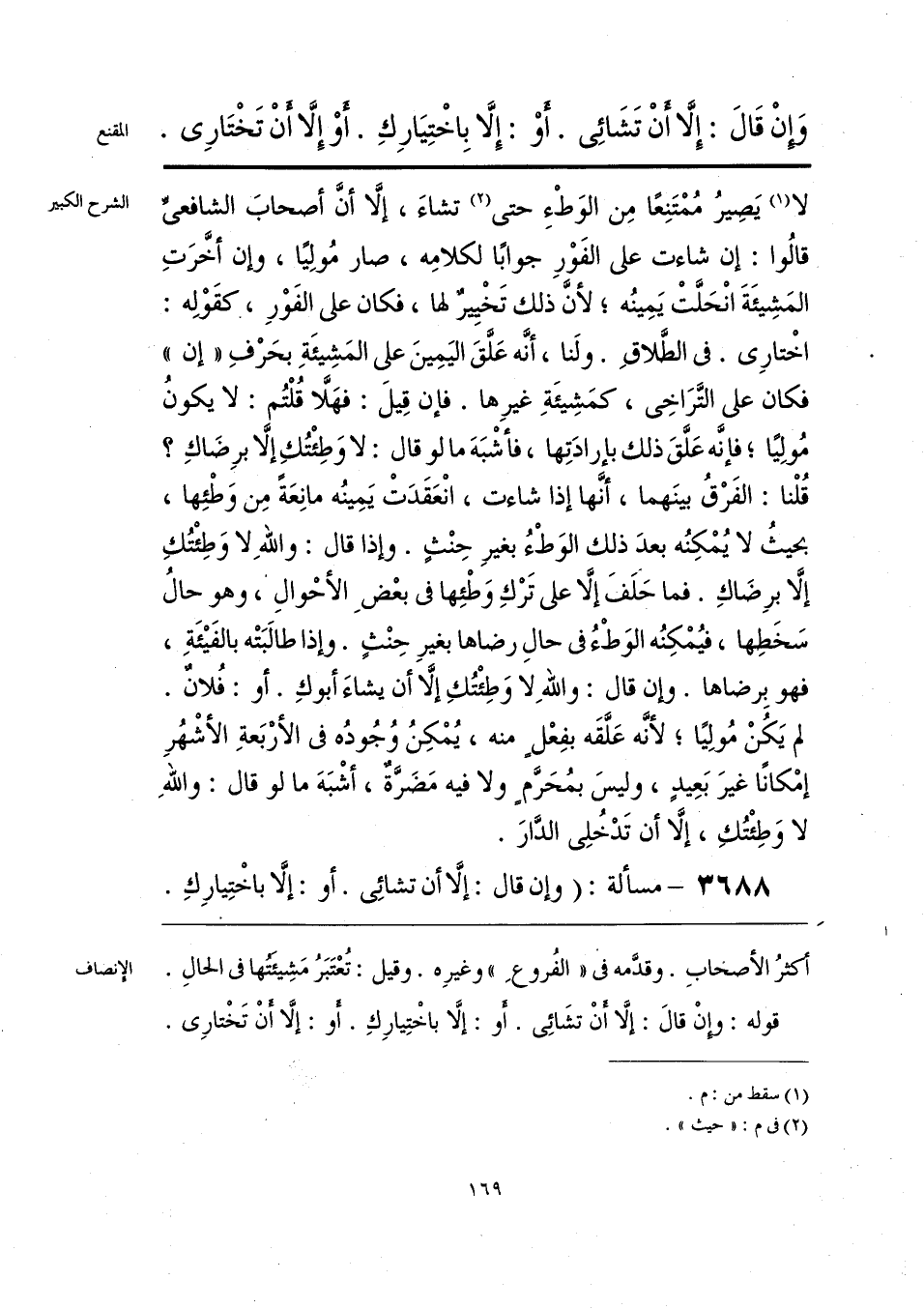 قوله: وإنْ قال: إلَّا أنْ تشَائِي. أو: إلَّا باخْتِيارِكِ. أو: إلَّا أنْ تَخْتارِي.