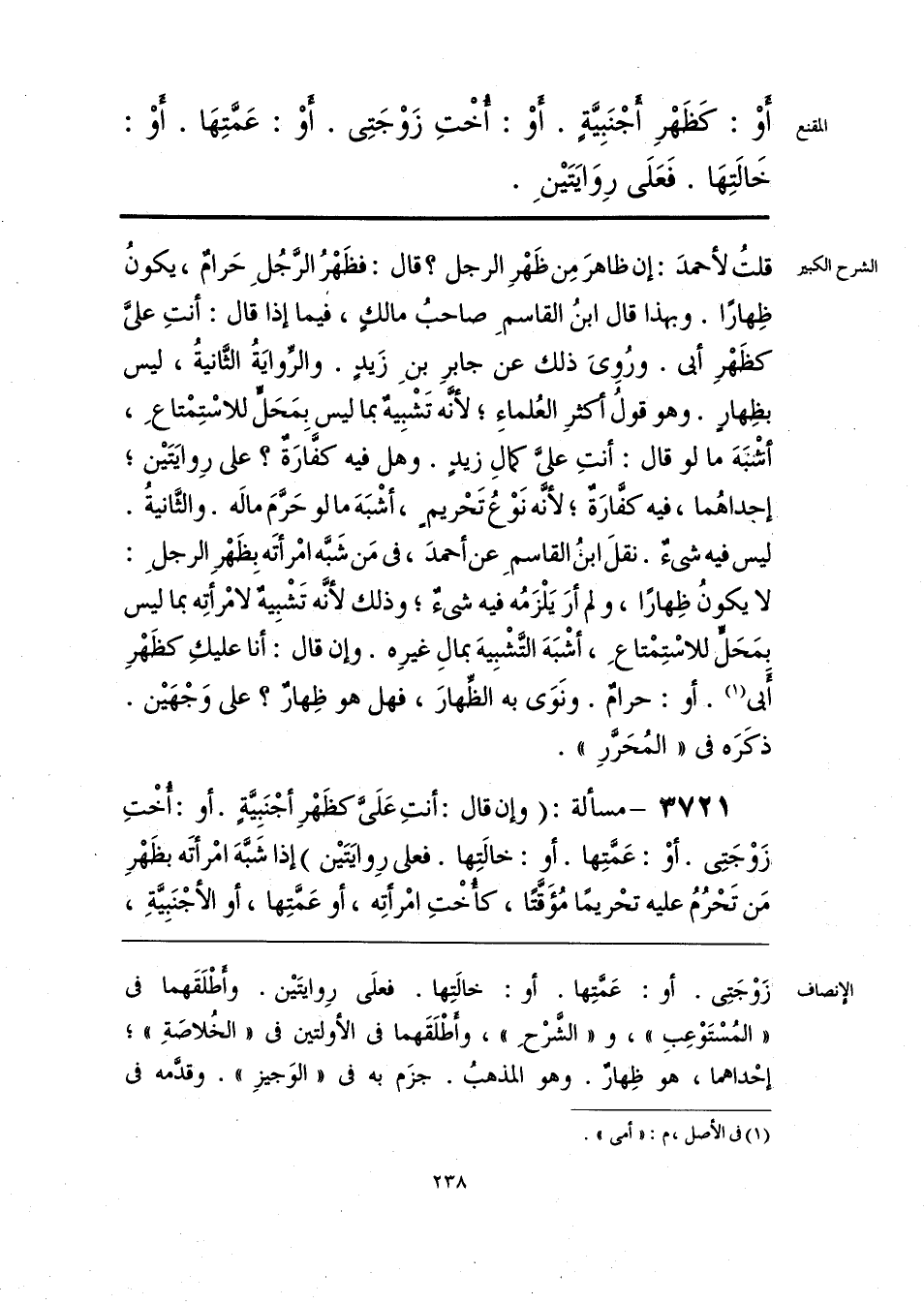 أوْ: كَظَهْرِ أجْنَبِيَّةٍ. أوْ: أُخْتِ زَوْجَتِي. أوْ: عَمَّتِهَا. أوْ: خَالتِهَا. فَعَلَى رِوَايَتَينِ.