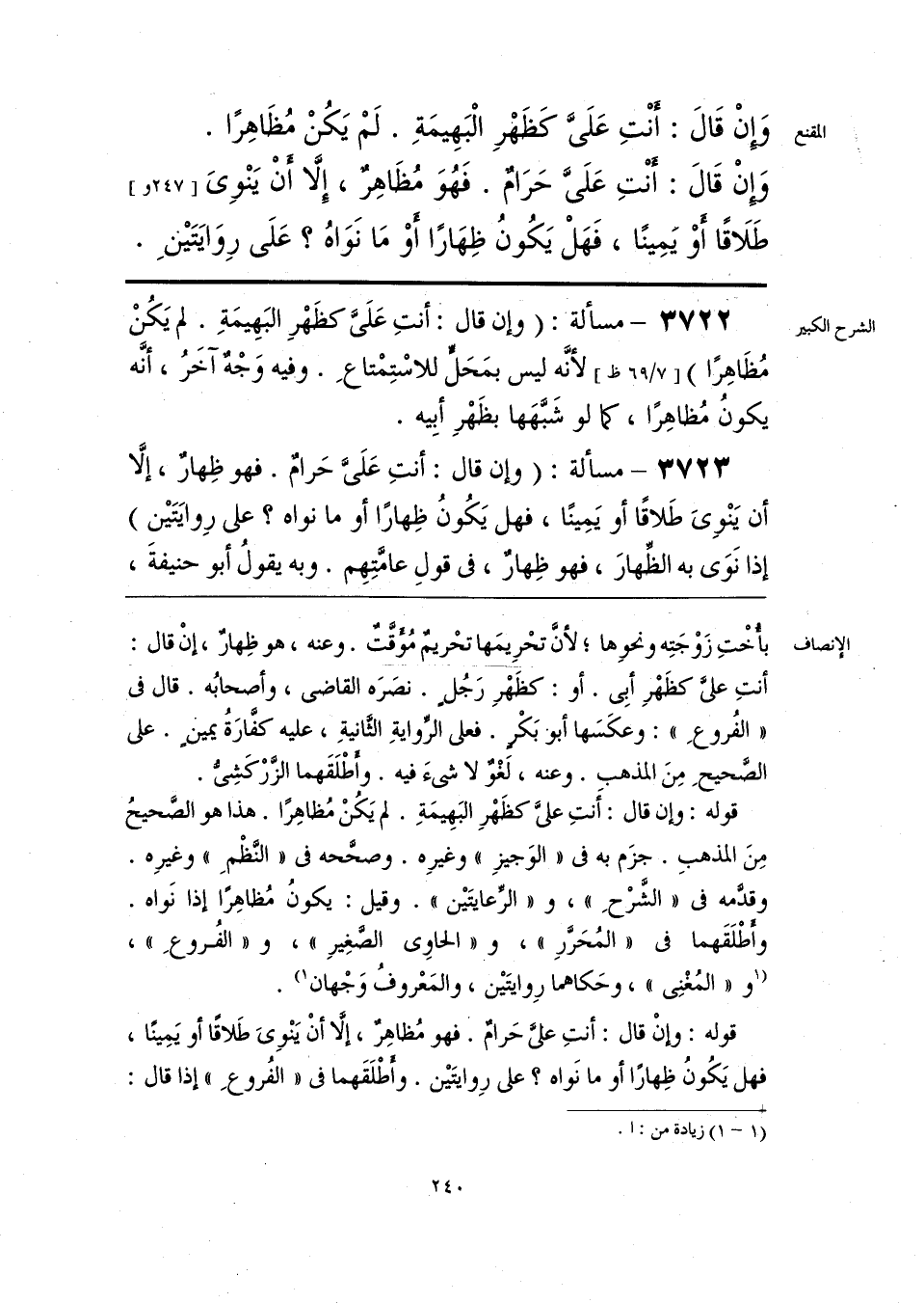 قوله: وإن قال: أَنتِ عليَّ كظَهْرِ البَهِيمَةِ. لم يَكُنْ مُظاهِرًا. هذا هو الصَّحيحُ مِنَ المذهبِ. جزَم به في «الوَجيزِ» وغيرِه. وصحّحه في «النظْمِ» وغيرِه. وقدَّمه في «الشَّرْحِ»، و «الرِّعايتَين». وقيل: يكونُ مُظاهِرًا إذا نَواه. وأطْلَقَهما في «المُحَررِ»، و «الحاوي الصَّغِيرِ»، و «الفُروعِ»، [و «المُغْنِي»، وحَكاهما رِوايتَين، والمَعْروفُ وَجْهان] (¬1).