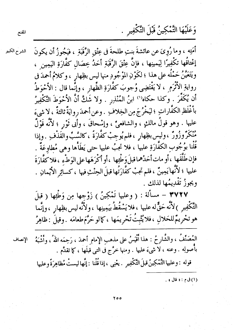 قوله: وعليها التَّمْكِينُ قبلَ التَّكْفِيرِ. يعْنِي، إذا قُلْنا: إنّها ليست مُظاهِرَةً وعليها