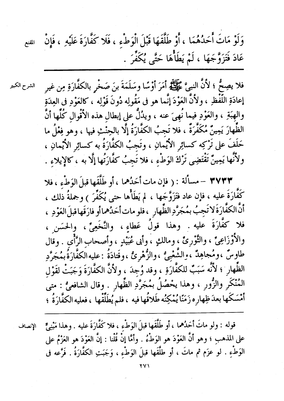 قوله: ولو ماتَ أحَدُهما، أو طَلَّقَها قبلَ الوَطْءِ، فلا كَفَّارَةَ عليه. وهذا مَبْنِيٌّ على المذهبِ؛ وهو أنَّ العَوْدَ هو الوَطْءُ. وأمَّا إنْ قُلْنا: إنَّ العَوْدَ هو العَزْمُ على الوَطْءِ. لو عزَم ثم ماتَ، أو طلَّقَها قبلَ الوَطْءِ، وَجَبَتِ الكفَّارَةُ. فَرَّعه في