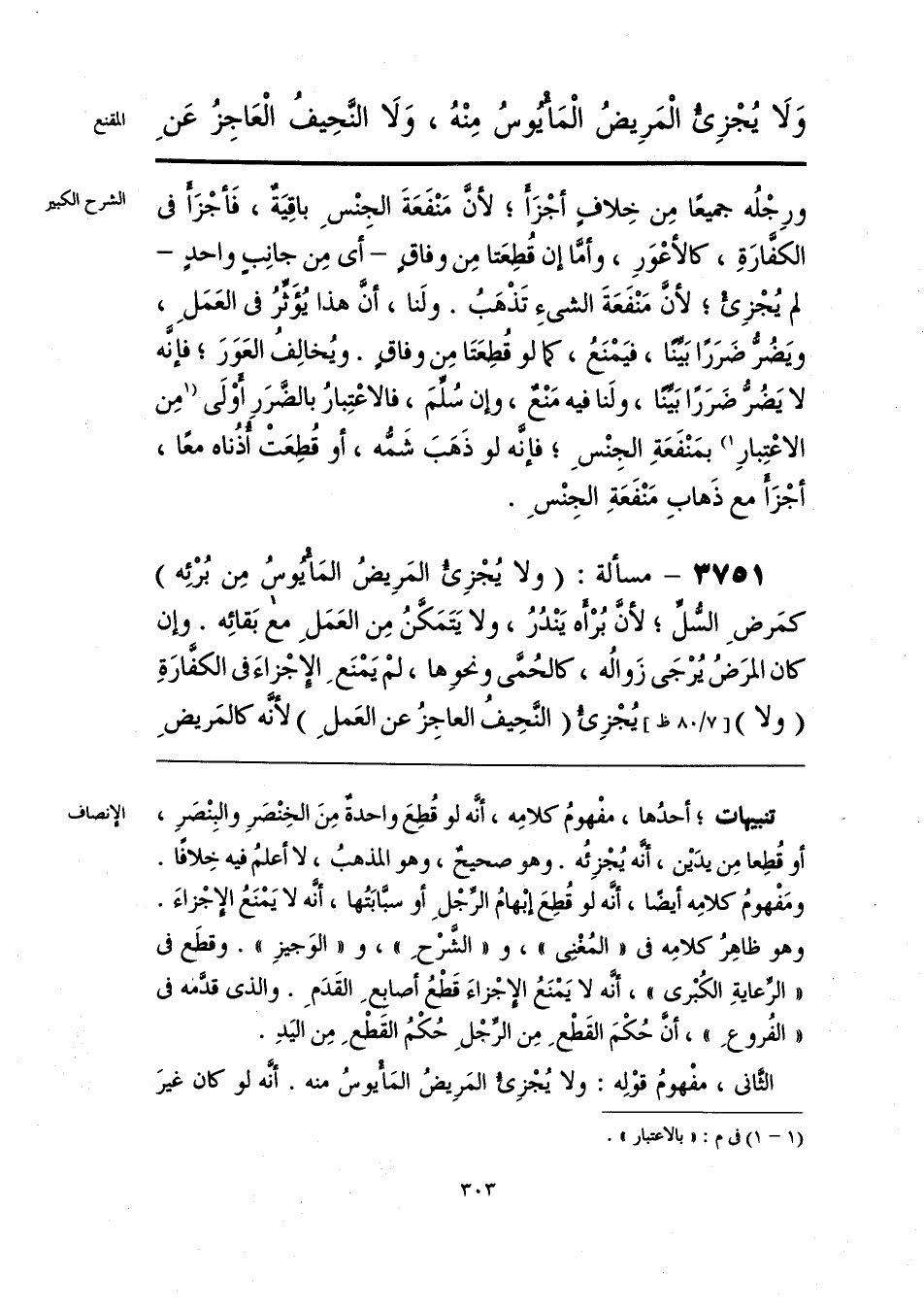الثَّاني، مفْهومُ قوْلِه: ولا يُجْزِيء المَرِيضُ المَأْيوسُ منه. أنَّه لو كان غيرَ