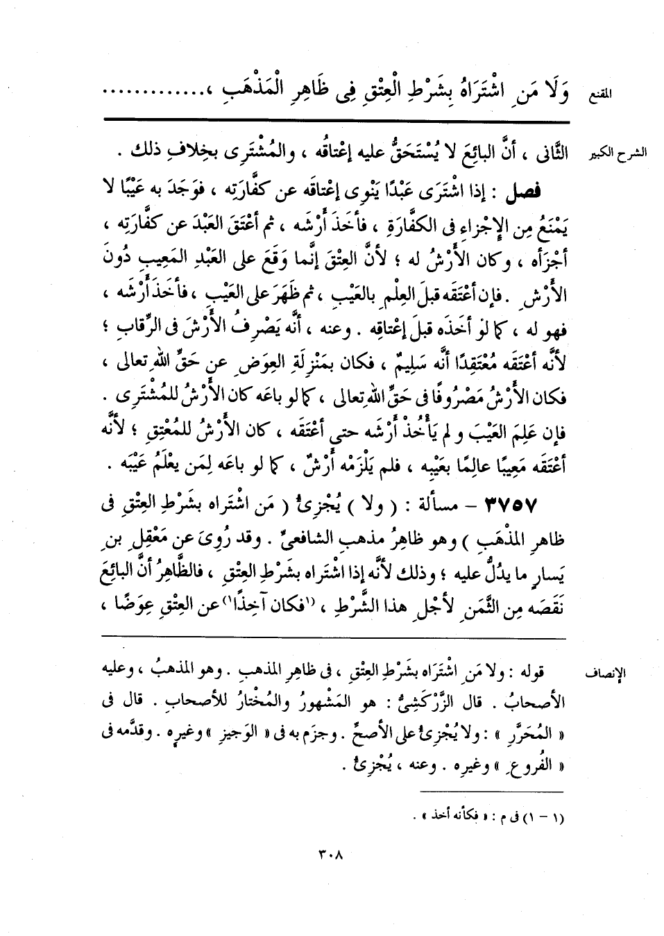 قوله: ولا مَنِ اشْتَرَاه بشَرْطِ العِتْقِ، في ظاهِرِ المذهبِ. وهو المذهبُ، وعليه الأصحابُ. قال الزَّرْكَشِيُّ: هو المَشْهورُ والمُخْتارُ للأصحابِ. قال في «المُحَرَّرِ»: ولا يُجْزِئُ على الأصحِّ. وجزَم به في «الوَجيزِ» وغيره. وقدَّمه في «الفُروعِ» وغيرِه. وعنه، يُجْزِئُ.