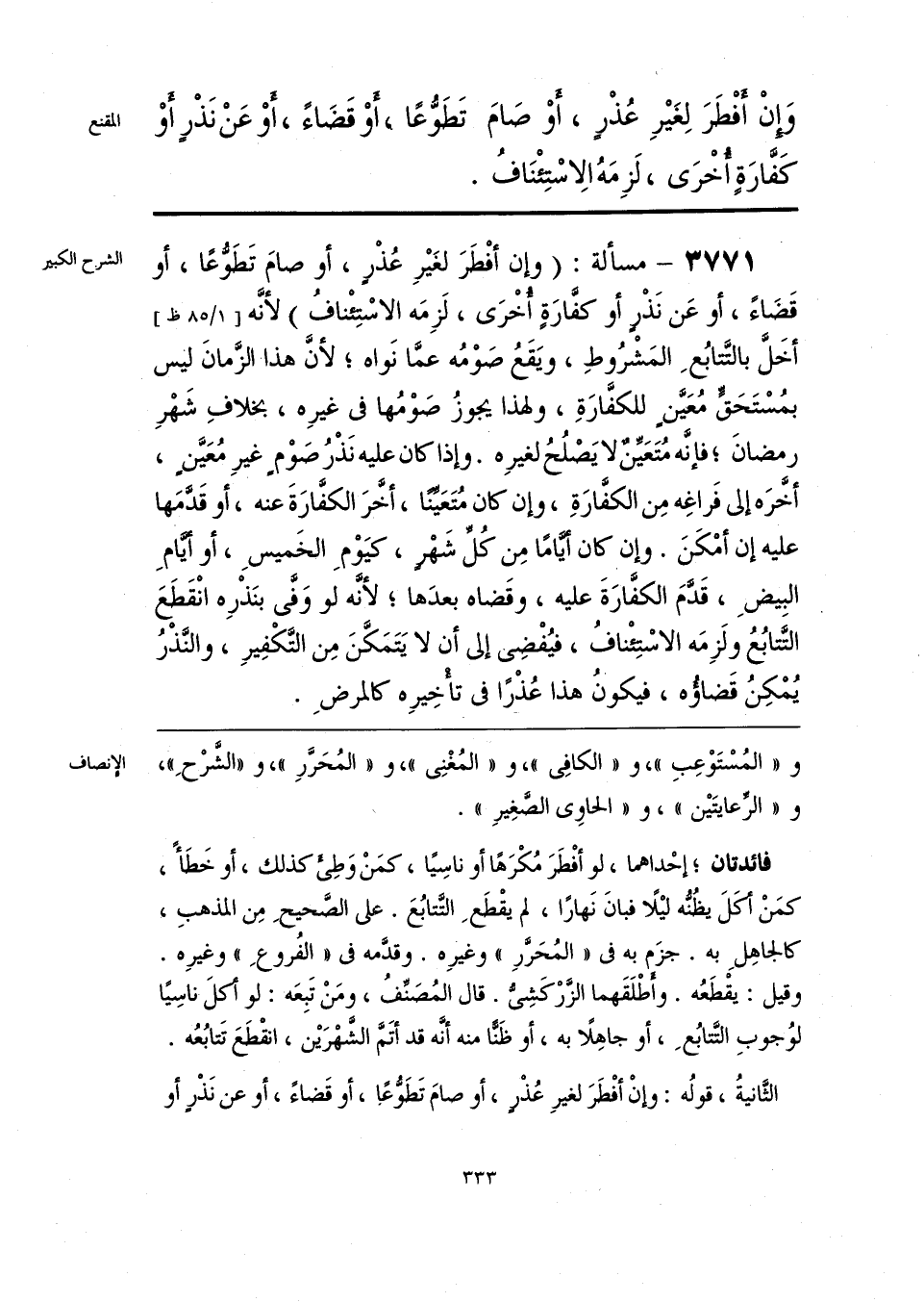 الثَّانيةُ، قولُه: وإنْ أفْطَرَ لغيرِ عُذْرٍ، أو صامَ تَطوُّعًا، أو قَضاءً، أو عن نَذْرٍ أو