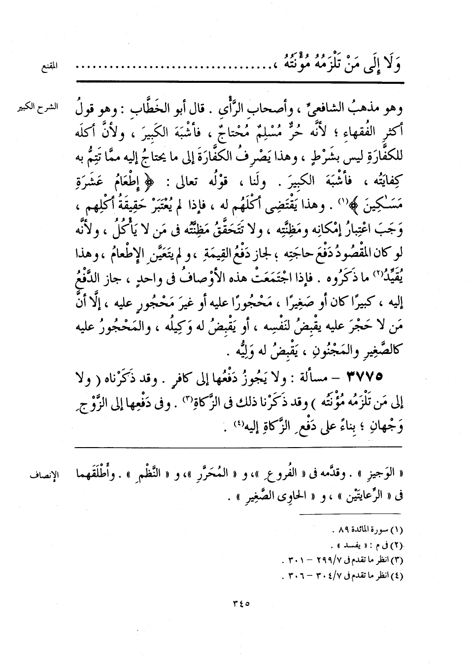 وَلَا إِلَى مَنْ تَلْزَمُهُ مُؤْنَتُهُ،