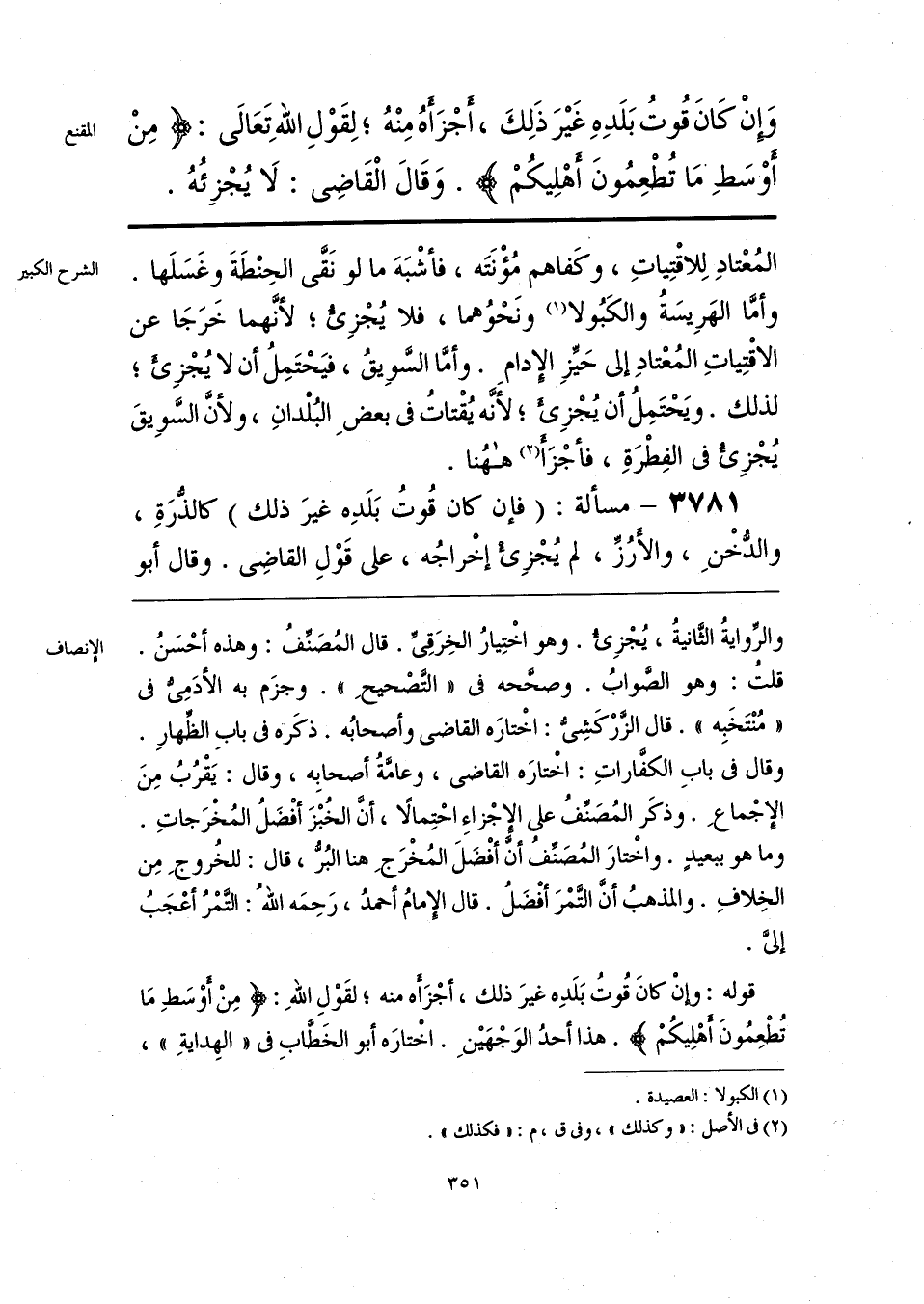 قوله: وإنْ كانَ قُوتُ بَلَدِه غيرَ ذلك، أجْزَأه منه؛ لقَوْلِ اللهِ: {مِنْ أَوْسَطِ مَا تُطْعِمُونَ أَهْلِيكُمْ}. هذا أحدُ الوَجْهَينِ. اخْتارَه أبو الخَطَّابِ في «الهِدايةِ»،