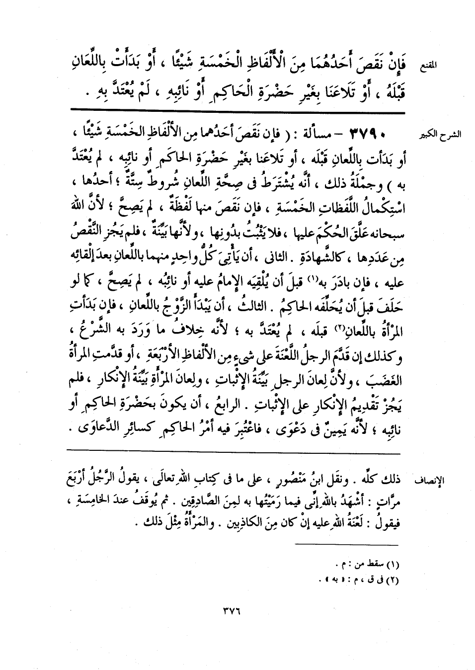 فَإنْ نَقَصَ أَحَدُهُمَا مِنَ الْأَلْفَاظِ الْخَمْسَةِ شَيئًا، أوْ بَدَأَتْ بِاللِّعَانِ قَبْلَهُ، أَوْ تَلَاعَنَا بِغَيرِ حَضْرَةِ الْحَاكِمِ أَوْ نَائِبِهِ، لَمْ يُعْتَدَّ بِهِ.