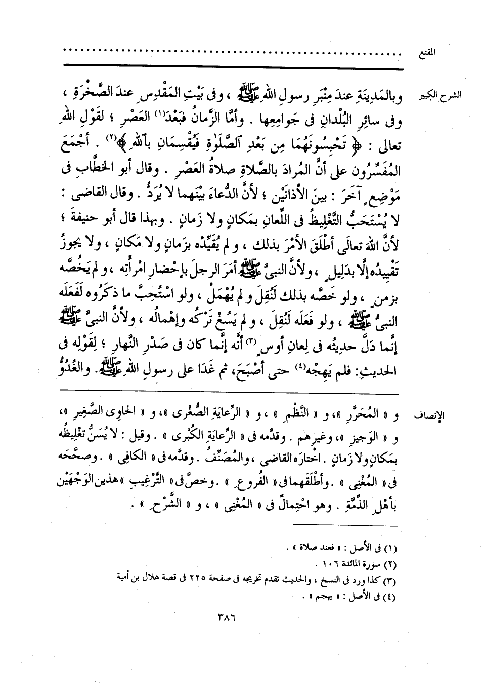 و «المُحَرَّرِ»، و «النَّظْمِ»، و «الرِّعايَةِ الصُّغْرى»، و «الحاوي الصَّغِيرِ»، و «الوَجيزِ»، وغيرِهم. وقدَّمه في «الرِّعايَةِ الكُبْرى». وقيل: لا يُسَنُّ تغْلِيظُه بمَكانٍ ولا زَمانٍ. اخْتارَه القاضي، والمُصَنِّفُ. وقدَّمه في «الكافي». وصحَّحَه في «المُغْنِي». وأطْلَقَهما في «الفُروعِ». وخصَّ في «التَّرْغِيبِ» هذين الوَجْهَين بأهْلِ الذِّمَّةِ. وهو احْتِمالٌ في «المُغْنِي»، و «الشَّرْحِ».