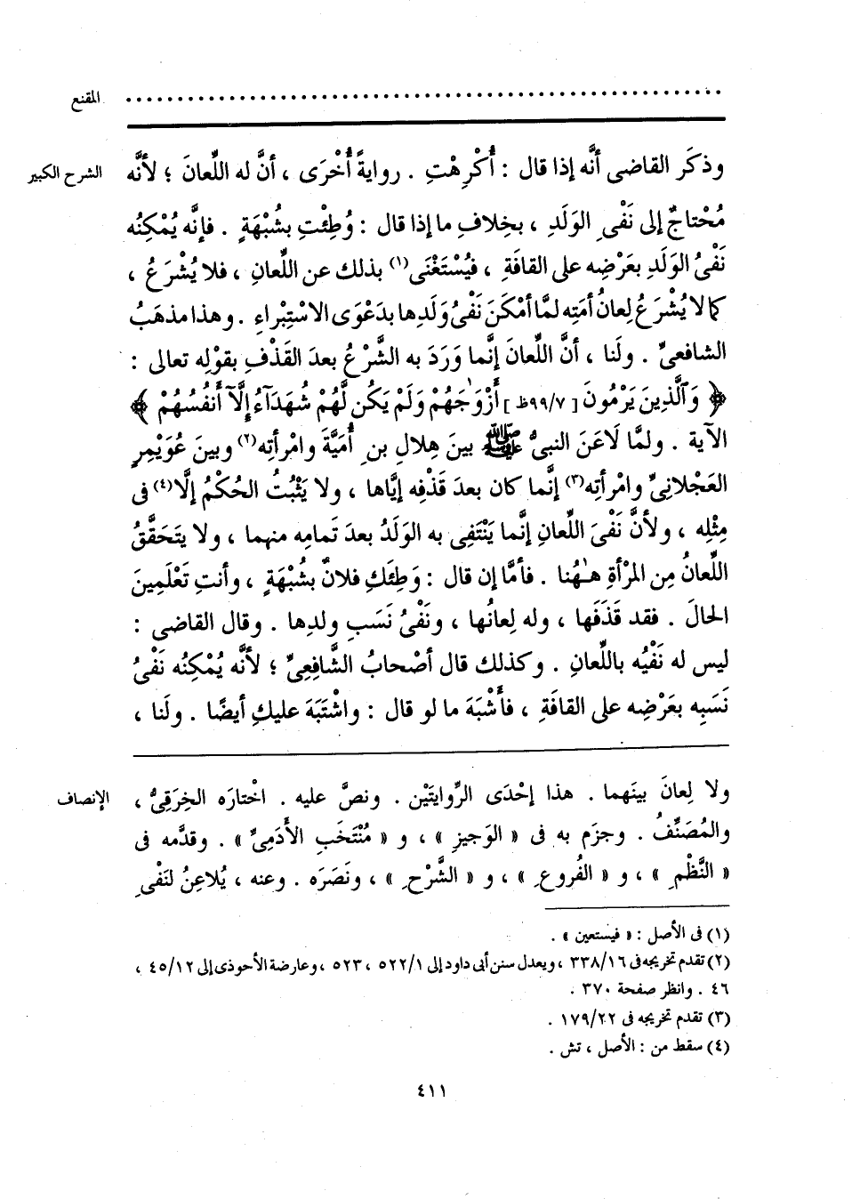 ولا لِعانَ بينَهما. هذا إحْدَى الرِّوايتَين. ونصَّ عليه. اخْتارَه الخِرَقِيُّ، والمُصَنِّفُ. وجزَم به في «الوَجيزِ»، و «مُنْتَخَبِ الأَدَمِيِّ». وقدَّمه في «النَّظْمِ»، و «الفُروعِ»، و «الشَّرْحِ»، ونَصَرَه. وعنه، يُلاعِنُ لنَفْي