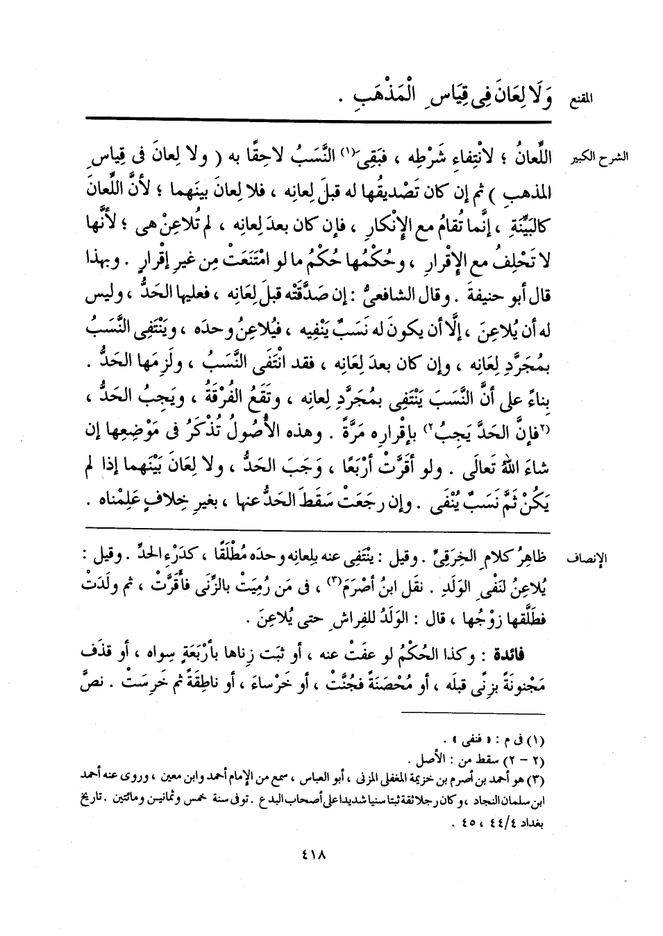 وَلَا لِعَانَ في قِيَاسِ الْمَذْهَبِ.