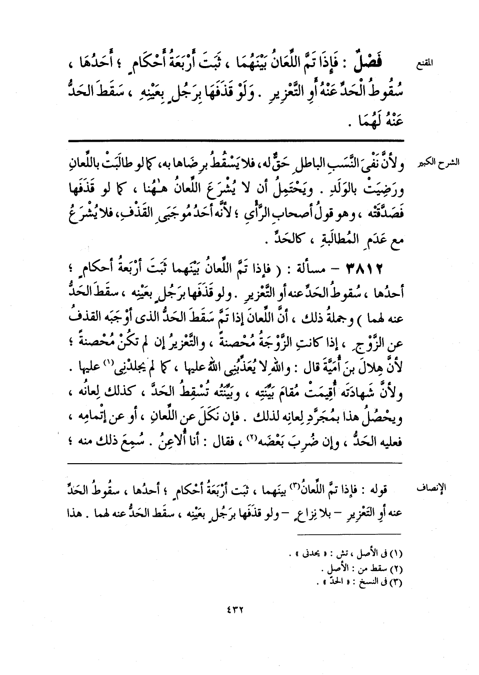 قوله: فإذا تَمْ اللِّعانُ (¬1) بينَهما، ثبَت أرْبَعَةُ أحْكامٍ؛ أحدُها، سقُوطُ الحَدِّ عنه أو التَّعْزِيرِ -بلا نِزاعٍ- ولو قذَفَها برَجُلٍ بعَينِه، سقَط الحَدُّ عنه لهما. هذا