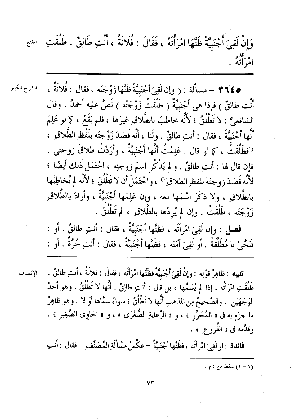 تنبيه: ظاهِرُ قوْلِه: وإنْ لَقِيَ أجْنَبِيَّةً فظنَّها امْرَأتَه، فقال: فلانَةُ، أنتِ طالق. طَلُقَتِ امْرَأتُه. إذا لم يُسَمِّها، بل قال: أنتِ طالِق. أنَّها لا تَطْلُقُ. وهو أحدُ الوَجْهَينِ. والصحيحُ مِن المذهبِ أنها لا تَطْلُقُ؛ سواء سماها أوْ لا. وهو ظاهِرُ ما جزَم به في «المُحَرَّرِ»، و «الرِّعايةِ الصُّغْرَى»، و «الحاوي الصَّغِيرِ». وقدَّمه في «الفُروعِ».