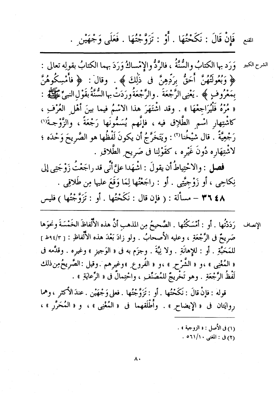 رَدَدْتُها. أو: أمْسَكْتُها. الصحيحُ مِن المذهبِ أن هذه الألفاظَ الخَمْسَةَ ونحوَها صَرِيحٌ في الرَّجْعَةِ، وعليه الأصحابُ. ولو زادَ بَعْدَ هذه الألفاظِ: للمَحَبَّةِ. أو: للإهانَةِ. ولا نِيَّةَ. وجزَم به في «الوَجيزِ» وغيرِه. وقدَّمه في «المُغْنِي»، و «الشَّرْحِ»، و «الفُروعِ» وغيرِهمْ. وقيل: الصَّرِيحُ مِن ذلك لَفْظُ الرَّجْعَةِ. وهو تَخْريجٌ للمُصَنِّفِ، واحْتِمالٌ في «الرِّعايَةِ».