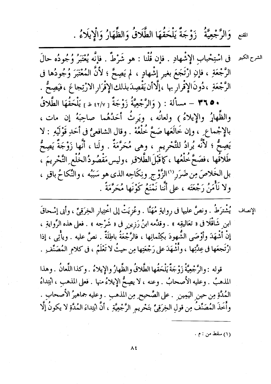 قوله: والرَّجْعِيَّةُ زَوْجَةٌ يَلْحَقُها الطلاقُ والظِّهارُ والإيلاءُ. وكذا اللعانُ. وهذا المذهبُ. وعليه الأصحابُ. وعنه، لا يصِحُّ الإيلاءُ منها. فعلى المذهبِ، ابْتِداءُ المُدَّةِ مِن حينِ اليَمِينِ. على الصَّحيحِ مِن المذهبِ. وعليه جماهيرُ الأصحابِ. وأخَذَ المُصَنِّفُ مِن قولِ الخِرَقِيِّ بتَحْريمِ الرجْعِيَّةِ، أن ابْتِداءَ المُدَّة لا يكونُ إلَّا
