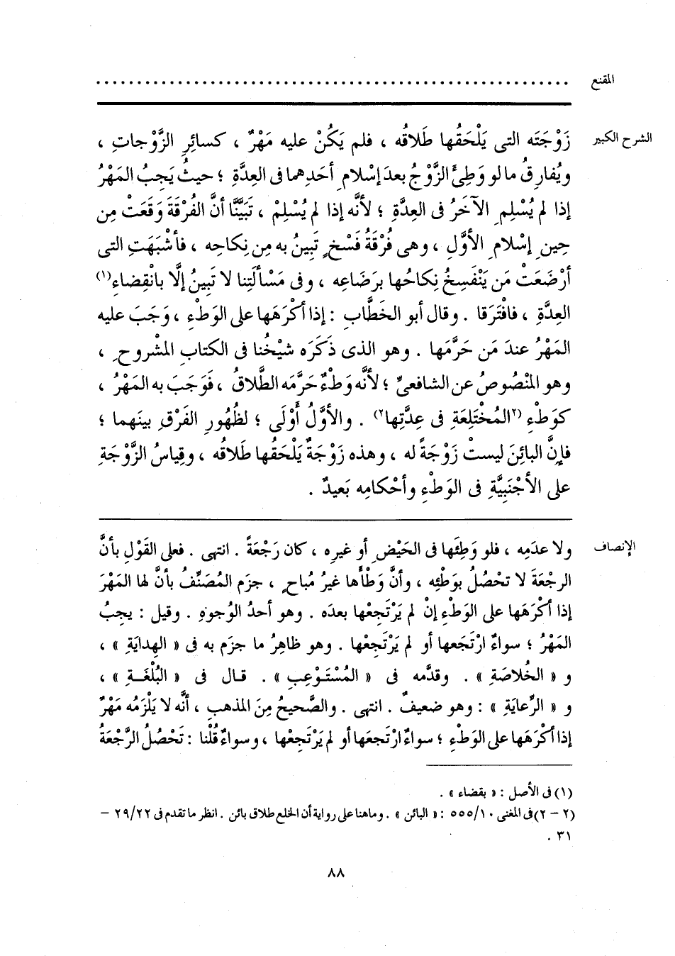 ولا عدَمِه، فلو وَطِئَها في الحَيضِ أو غيرِه، كان رَجْعَةً. انتهى. فعلى القَوْلِ بأنَّ الرجْعَةَ لا تحْصُلُ بوَطْئِه، وأنَّ وَطْأها غيرُ مُباحٍ، جزَم المُصَنِّفُ بأن لها المَهْرَ إذا أكْرَهَها على الوَطْءِ إنْ لم يَرْتَجِعْها بعدَه. وهو أحدُ الوُجوهِ. وقيل: يجِبُ المَهْرُ؛ سواءٌ ارْتَجَعها أو لم يَرْتَجِعْها. وهو ظاهِرُ ما جزَم به في «الهِدايَةِ»، و «الخُلاصَةِ». وقدَّمه في «المُسْتَوْعِبِ». قال في «البُلْغَةِ»، و «الرِّعايَةِ»: وهو ضعيفٌ. انتهى. والصَّحيحُ مِنَ المذهبِ، أنَّه لا يَلْزَمُه مَهْرٌ إذا أكْرَهَها على الوَطْءِ؛ سواءٌ ارْتَجعَها أو لم يَرْتَجِعْها، وسواءٌ قُلْنا: تَحْصُلُ الرَّجْعَةُ