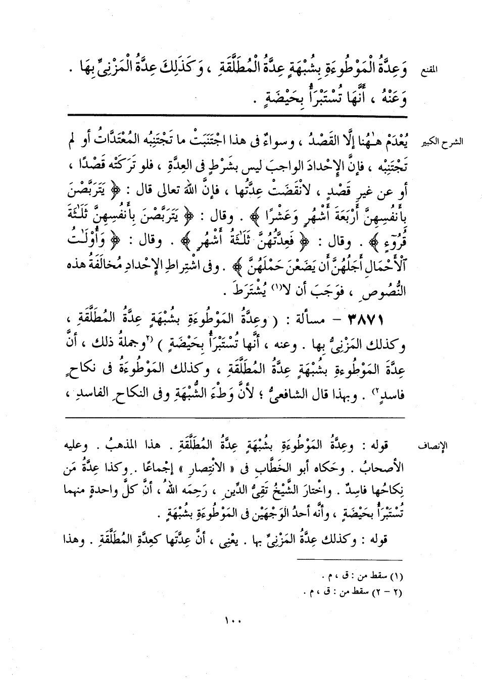 قوله: وعِدَّةُ المَوْطُوءَةِ بشُبْهَةٍ عِدَّةُ المُطَلَّقَةِ. هذا المذهبُ. وعليه الأصحابُ. وحَكاه أبو الخَطَّابِ في «الانْتِصارِ» إجماعًا. وكذا عِدَّةُ مَن نِكاحُها فاسِد. واخْتارَ الشَّيخُ تَقِي الدِّينِ، رَحِمَه اللهُ، أن كلَّ واحدةٍ منهما تُسْتَبْرأ بحَيضَةٍ، وأنَّه أحدُ الوَجْهَين في المَوْطُوءَةِ بشُبْهَةٍ.