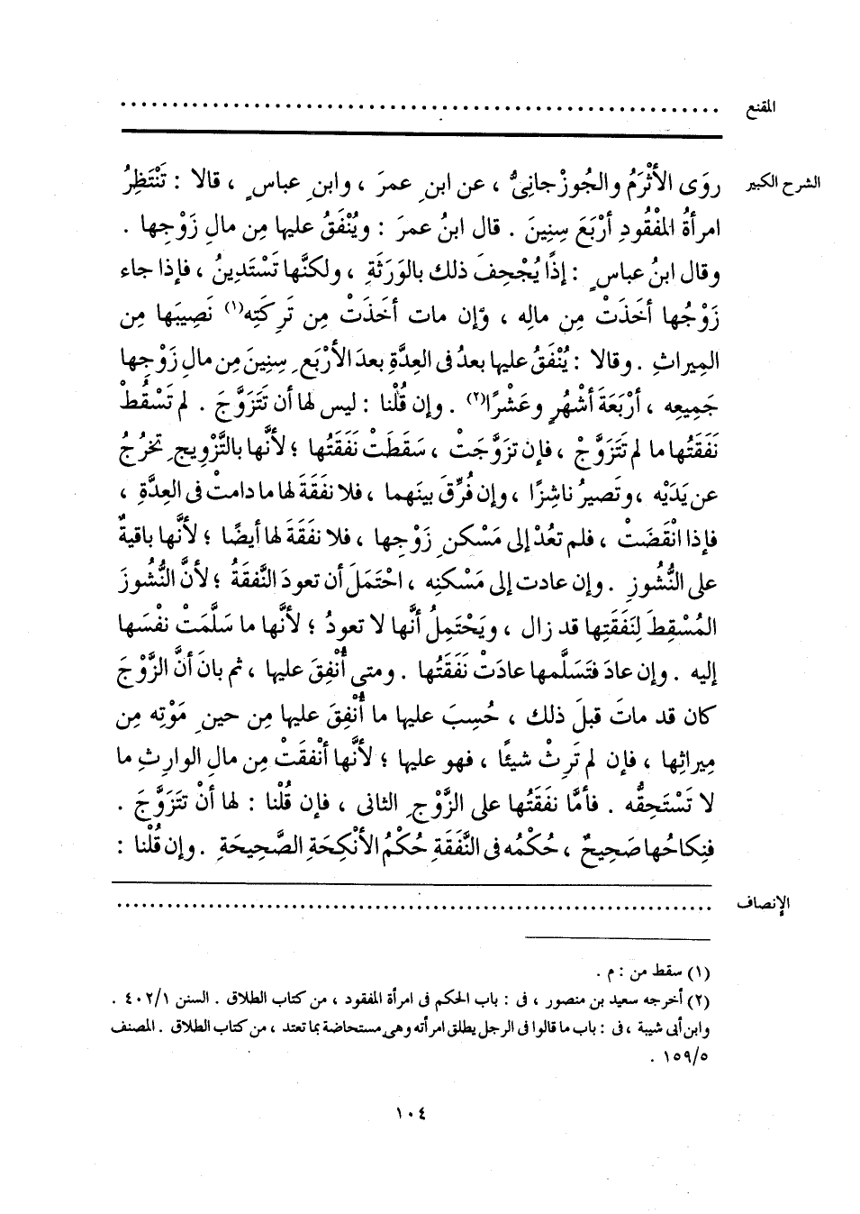 (¬2) أخرجه سعيد بن منصور، في: باب الحكم في امرأة المفقود، من كتاب الطلاق. السنن 1/ 402. وابن أبي شيبة، في: باب ما قالوا في الرجل يطلق امرأته وهي مستحاضة بما تعتد، من كتاب الطلاق. المصنف 5/ 159.