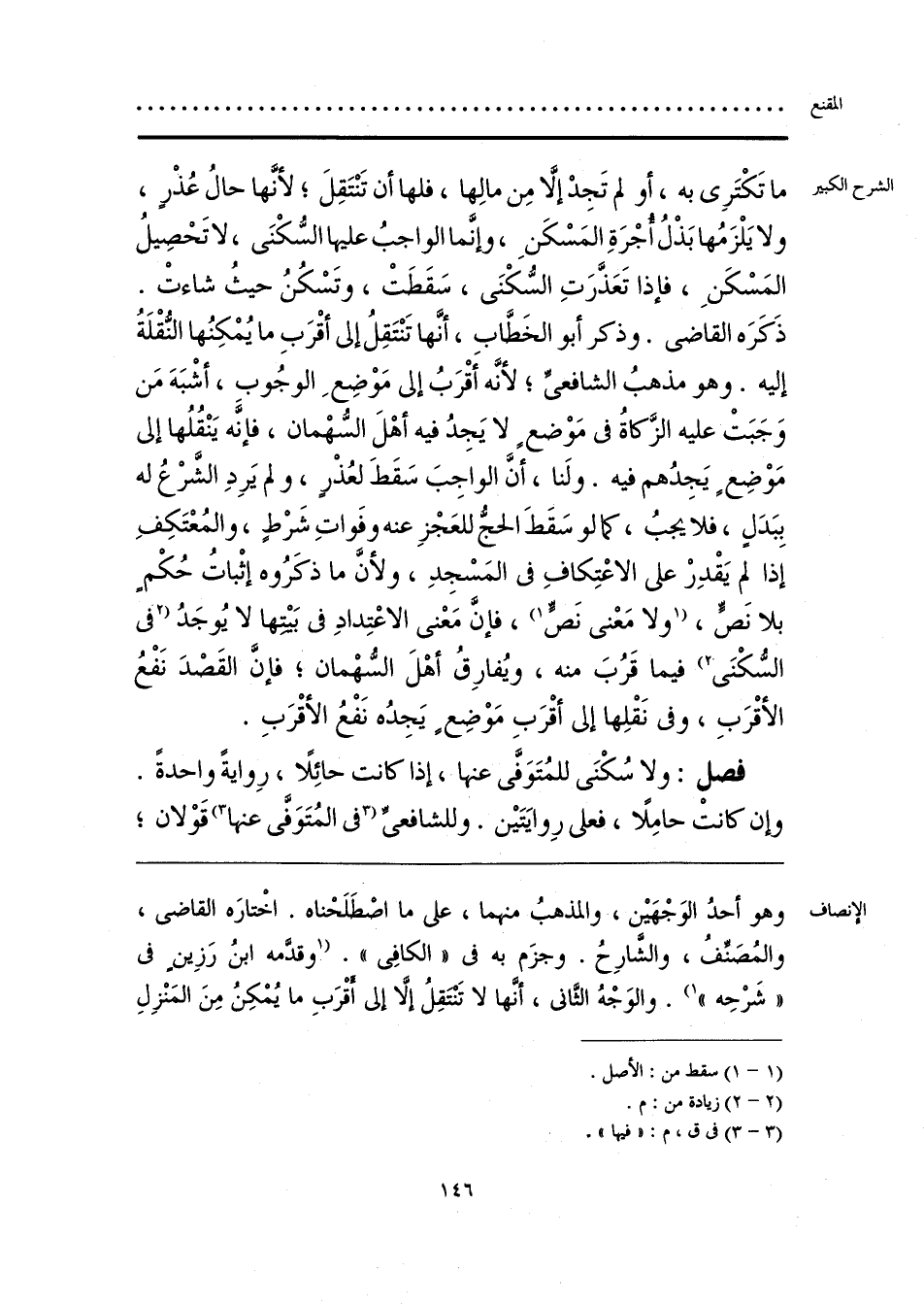 وهو أحدُ الوَجْهَين، والمذهبُ منهما، على ما اصْطَلَحْناه. اخْتارَه القاضي، والمُصَنِّفُ، والشَّارِحُ. وجزَم به في «الكافِي». [وقدَّمه ابنُ رَزِينٍ في «شَرْحِه»] (1). والوَجْهُ الثَّاني، أنَّها لا تَنتقِلُ إلَّا إلى أقْرَبِ ما يُمْكِنُ مِنَ المَنْزِلِ