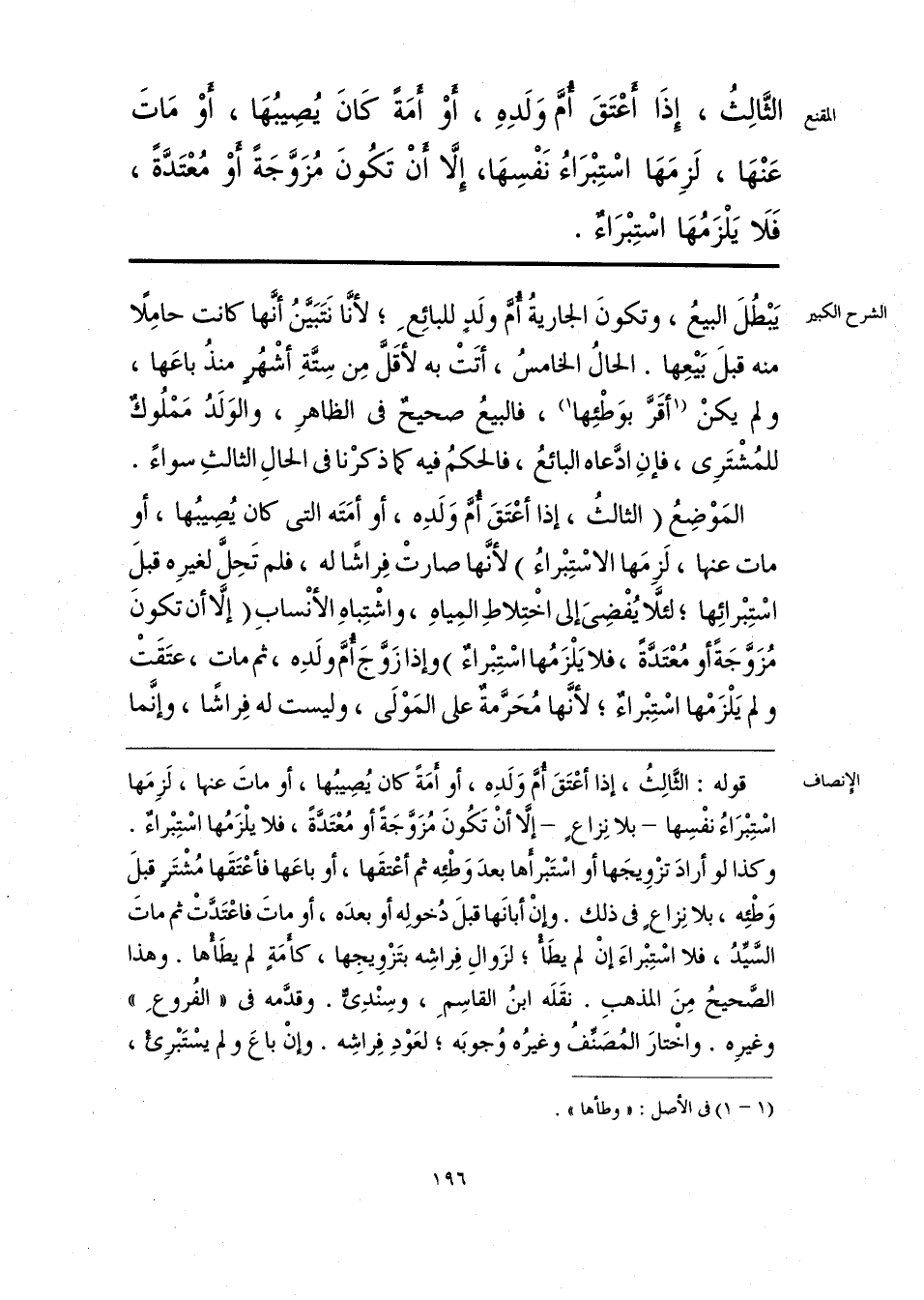 قوله: الثَّالِثُ، إذا أعْتَقَ أُمَّ وَلَدِه، أو أمَةً كان يُصِيبُها، أو ماتَ عنها، لَزِمَها اسْتِبْرَاءُ نفْسِها -بلا نِزاعٍ- إلَّا أنْ تَكُونَ مُزَوَّجَةً أو مُعْتَدَّةً، فلا يلْزَمُها اسْتِبْراءٌ. وكذا لو أرادَ تزْويجَها أو اسْتَبْرأها بعدَ وَطْئِه ثم أعْتقَها، أو باعَها فأعْتَقَها مُشْتَرٍ قبلَ وَطْئِه، بلا نِزاعٍ في ذلك. وإنْ أبانَها قبلَ دُخولِه أو بعدَه، أو ماتَ فاعْتَدَّتْ ثم ماتَ السَّيِّدُ، فلا اسْتِبْراءَ إنْ لم يطَأْ؛ لزَوالِ فِراشِه بتَزْويجِها، كأمَةٍ لم يطَأْها. وهذا الصَّحيحُ مِنَ المذهبِ. نقَلَه ابنُ القاسِمِ، وسِنْدِيٌّ. وقدَّمه في «الفُروعِ» وغيرِه. واخْتارَ المُصَنِّفُ وغيرُه وُجوبَه؛ لعَوْدِ فِراشِه. وإنْ باعَ ولم يسْتَبْرِئْ،