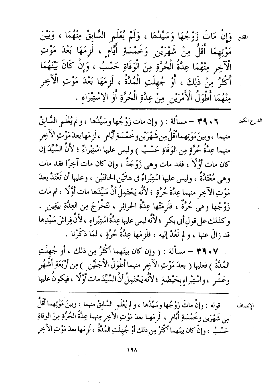 قوله: وإنْ ماتَ زَوْجُها وسَيِّدُها، ولم يُعْلَمِ السَّابِقُ منهما، وبينَ مَوْتِهما أقَلُّ مِن شَهْرَين وخَمْسَةِ أَيَّامٍ، لَزِمَها بعدَ مَوْتِ الآخِرِ مِنهما عِدَّةُ الحُرَّةِ مِنَ الوفاةِ حَسْبُ، وإن كان بينهما أكْثَرُ مِن ذلك أوْ جُهِلَتِ المُدَّةُ، لَزِمَها بعدَ مَوْتِ الآخِرِ
