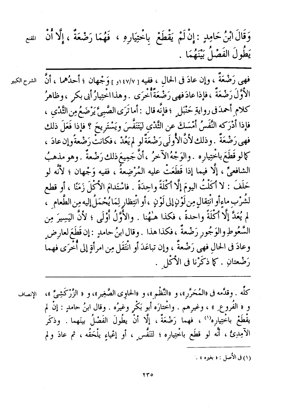 كلِّه. وقدَّمه في «المُحَرَّرِ»، و «النَّظْمِ»، و «الحاوي الصَّغِيرِ»، و «الزَّرْكَشِيِّ»، و «الفُروعِ»، وغيرِهم. واخْتارَه أبو بَكْرٍ وغيرُه. وقال ابنُ حامدٍ: إنْ لم يقْطَعْ باخْتِيارِه (¬1)، فهما رَضْعَةٌ، أنْ يطُولَ الفَصْلُ بينَهما. وذكَر الآمِدِيُّ، أنَّه لو قطَع باخْتِيارِه؛ لتَنَفُّسٍ، أو إعْياءٍ يلْحَقُه، ثم عادَ ولم