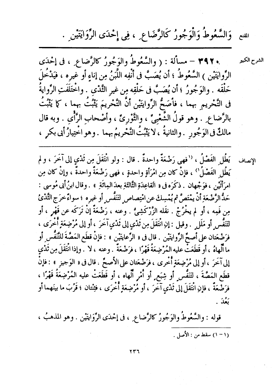 قوله: والسَّعُوطُ والوَجُورُ كالرَّضاعِ، في إحْدَى الرِّوَايتَين. وهو المذهبُ،