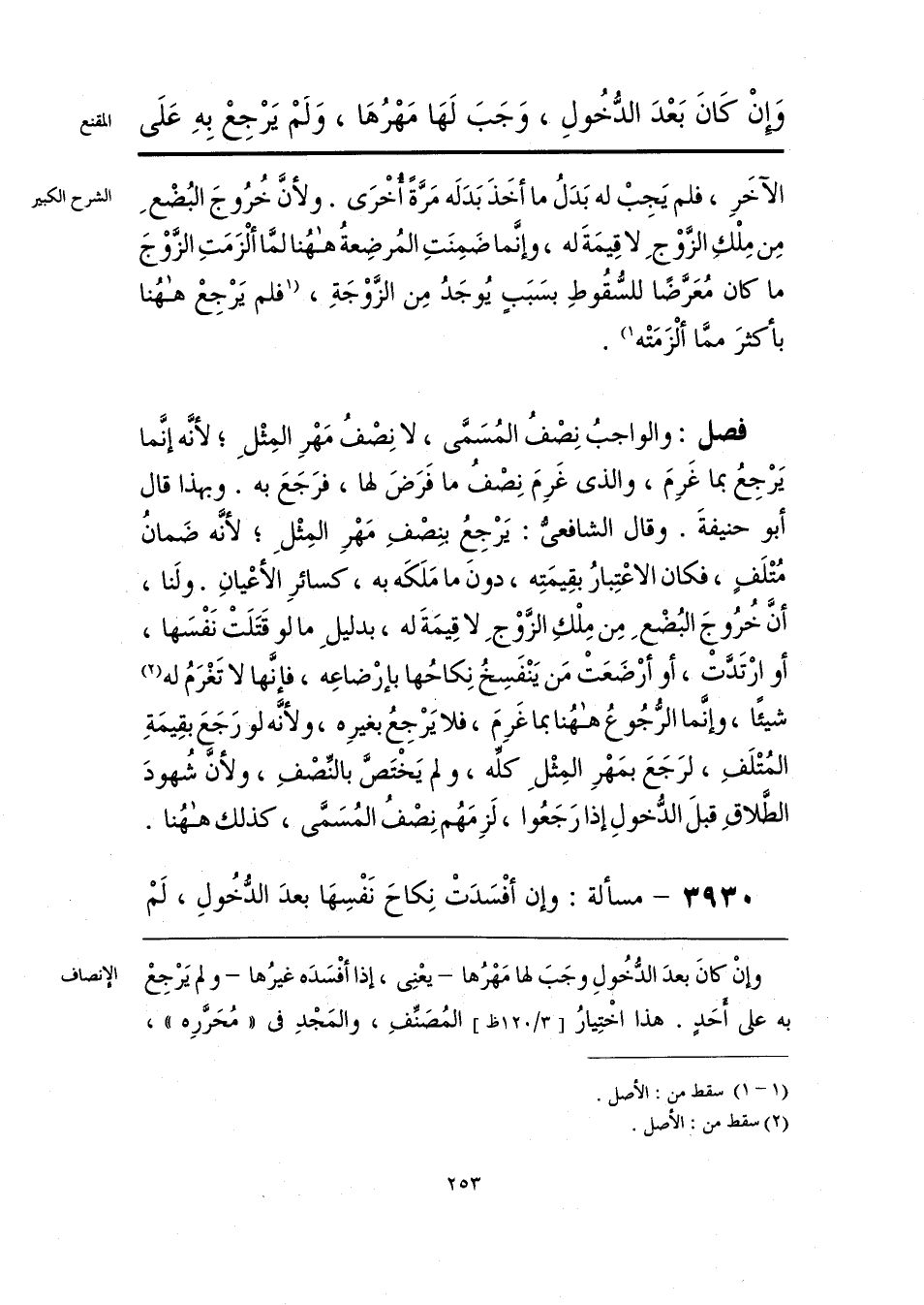 وإنْ كانَ بعدَ الدُّخُولِ وجَبَ لها مَهْرُها -يعْنِي، إذا أفْسَدَه غيرُها- ولم يَرْجِعْ به على أحَدٍ. هذا اخْتِيارُ المُصَنِّفِ، والمَجْدِ في «مُحَرَّرِه»،