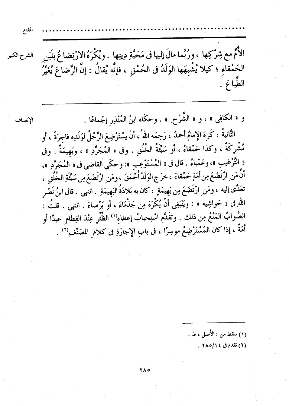 الثانيةُ، كَرِهَ الإمامُ أحمدُ، رَحِمَه اللهُ، أنْ يسْتَرْضِعَ الرَّجُلُ لوَلَدِه فاجِرَةً، أو مُشْرِكَةً، وكذا حَمْقاءُ، أو سَيِّئَةُ الخُلُقِ. وفي «المُجَرَّدِ»، وبَهِيمَةٌ. وفي «التَّرْغيبِ»، وعَمْياءُ. قال في «المُسْتَوْعِبِ»: وحكَى القاضي في «المُجَرَّدِ»، أنَّ مَنِ ارْتَضَعَ مِن أَمَةٍ حَمْقاءَ، خرَج الوَلَدُ أحْمَقَ، ومَنِ ارْتَضَعَ مِن سَيِّئَةِ الخُلُقِ، تعَدَّى إليه، ومَنِ ارْتَضَعَ مِن بَهِيمَةٍ، كان به بَلادَةُ البَهِيمَةِ. انتهى. قال ابنُ نَصْرِ اللهِ في «حَواشِيه»: ويَنْبَغِي أنْ يُكْرَهَ مِن جَذْمَاءَ، أو بَرْصاءَ. انتهى. قلتُ: الصَّوابُ المَنْعُ مِن ذلك. وتقَدَّم اسْتِحبابُ إعطاءِ (¬1) الظِّئْرِ عِنْدَ الفِطامِ عبدًا أو أمَةً، إذا كان المُسْتَرْضِعُ موسِرًا، في بابِ الإِجارَةِ في كلامَ المصَنِّفِ (¬2).