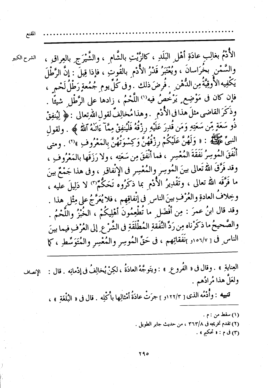 العِنايةِ». وقال في «الفُروعِ»: ويتَوجَّهُ العادَةُ، لكِنْ يُخالِفُ في إدْمانِه. قال: ولعَلَّ هذا مُرادُهم.