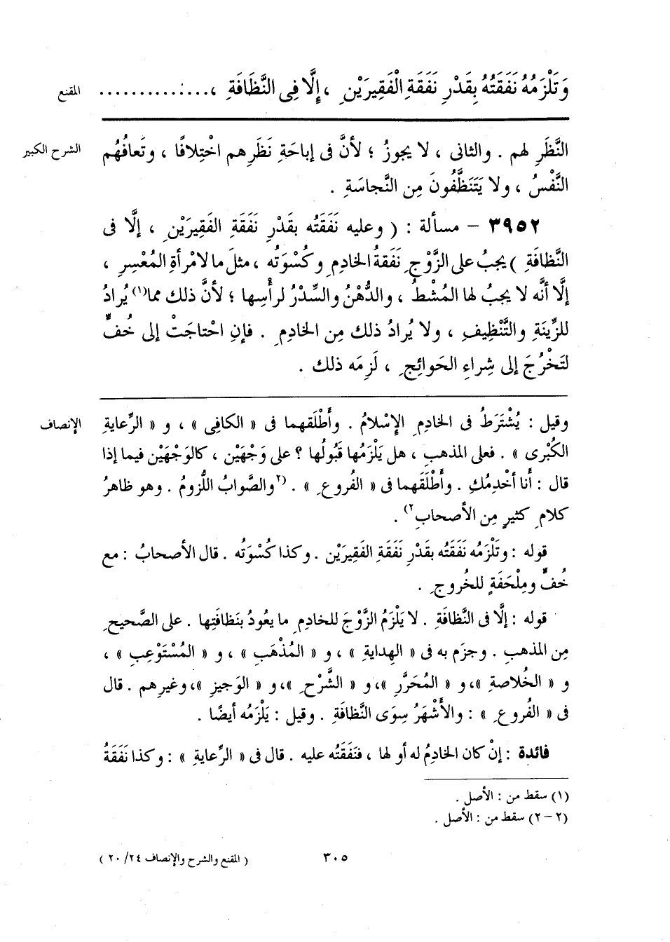 قوله: وتَلْزَمُه نَفَقَتُه بقَدْرِ نَفَقَةِ الفَقِيرَين. وكذا كُسْوَتُه. قال الأصحابُ: مع خُفٍّ ومِلْحَفَةٍ للخُروجِ.