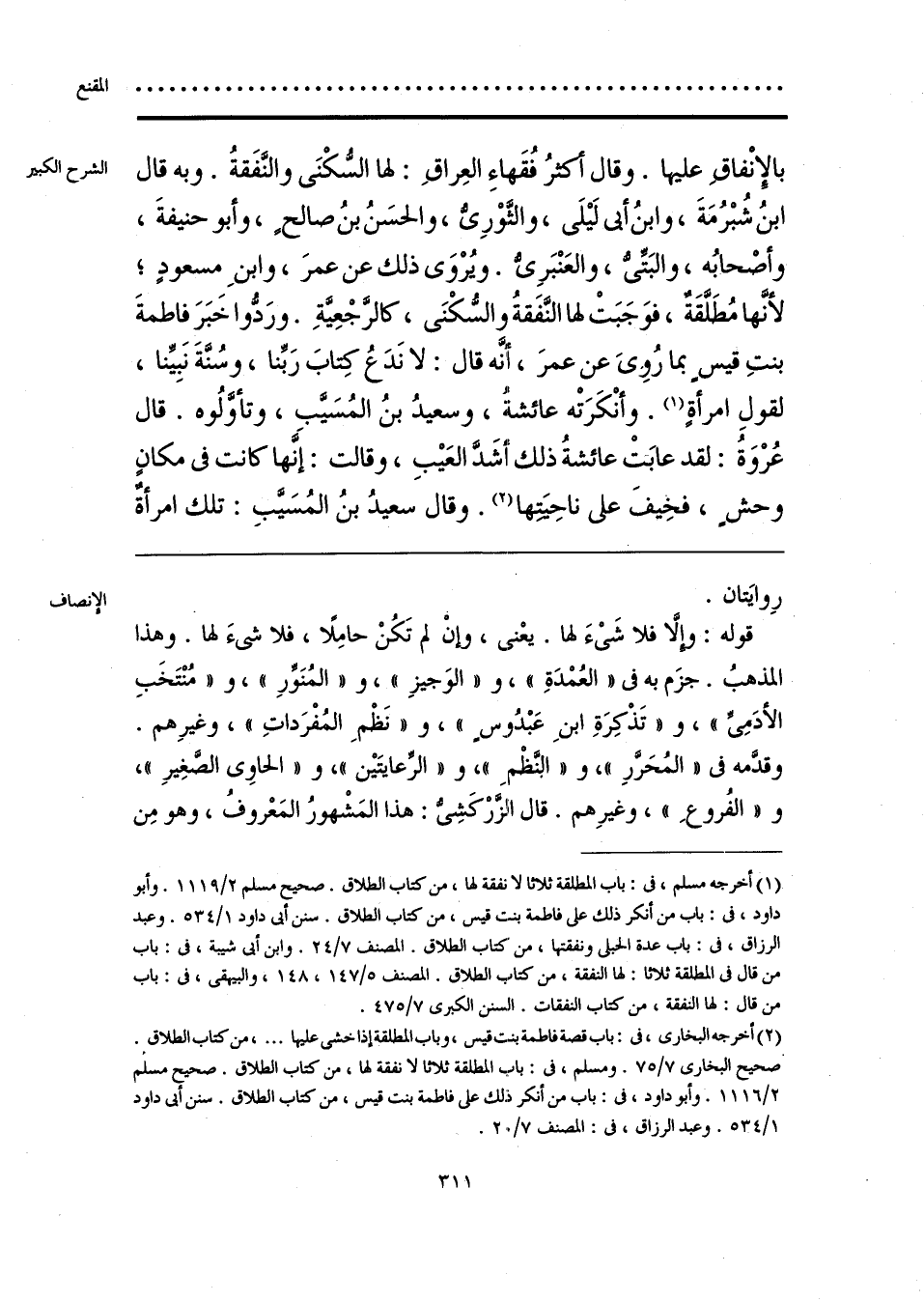 قوله: وإِلَّا فلا شَىْءَ لها. يعْنى، وإنْ لم تَكُنْ حامِلًا، فلا شئَ لها. وهذا المذهبُ. جزَم به فى «العُمْدَةِ»، و «الوَجيزِ»، و «المُنَوِّرِ»، و «مُنْتَخَبِ الأدَمِىِّ»، و «تَذْكِرَةِ ابنِ عَبْدُوسٍ»، و «نَظْمِ المُفْرَداتِ»، وغيرِهم. وقدَّمه فى «المُحَرَّرِ»، و «النَّظْمِ»، و «الرِّعايتَيْن»، و «الحاوِى الصَّغِيرِ»، و «الفُروعِ»، وغيرِهم. قال الزَّرْكَشِىُّ: هذا المَشْهورُ المَعْروفُ، وهو مِن