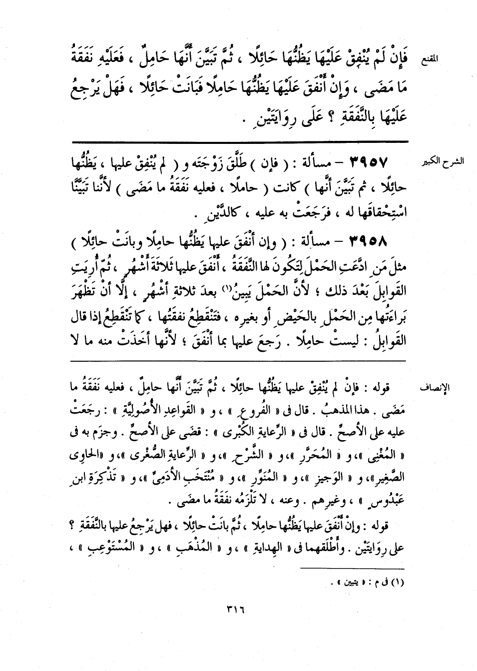 قوله: فإنْ لم يُنْفِقْ عليها يَظُنُّها حائِلًا، ثُمَّ تَبَيَّنَ أَنَّها حامِلٌ، فعليه نَفَقَةُ ما مَضَى. هذا المذهبُ. قال فى «الفُروعِ»، و «القَواعِدِ الأُصُولِيَّةِ»: رجَعَتْ عليه على الأصحِّ. قال فى «الرِّعايَةِ الكُبْرى»: قضَى على الأصحِّ. وجزَم به فى «المُغْنِى»، و «المُحَرَّرِ»، و «الشَّرْحِ»، و «الرِّعايَةِ الصُّغْرى»، و «الحاوِى الصَّغِيرِ»، و «الوَجيزِ»، و «المُنَوِّرِ»، و «مُنْتَخَبِ الأدَمِىِّ»، و «تَذْكِرَةِ ابنِ عَبْدُوسٍ»، وغيرِهم. وعنه، لا تَلْزَمُه نفَقَةُ ما مضَى.