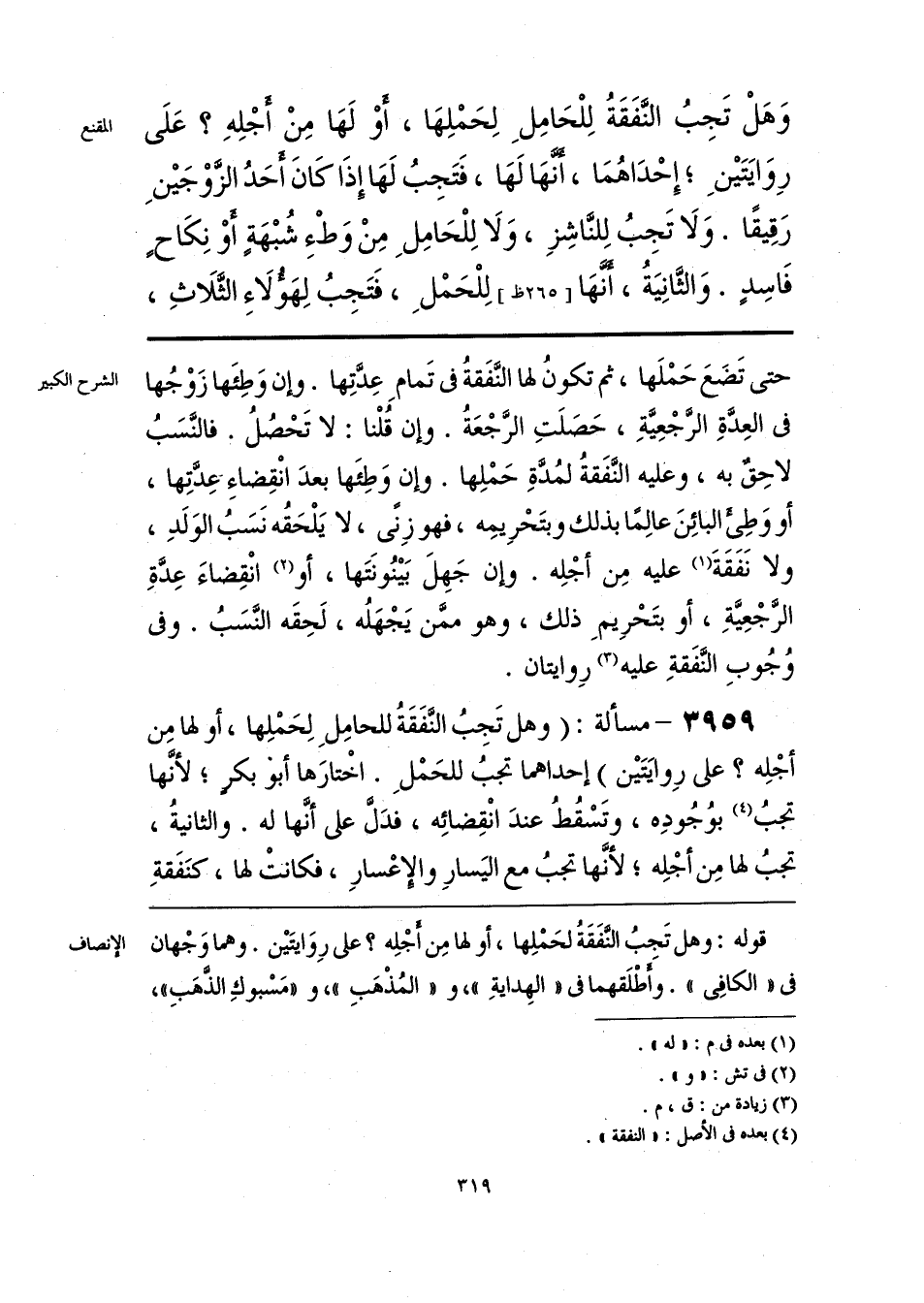 قوله: وهل تَجِبُ النَّفَقَةُ لحَمْلِها، أو لها مِن أَجْلِه؟ على رِوَايتَيْن. وهما وَجْهان فى «الكافِى». وأَطْلَقهما فى «الهِدايَةِ»، و «المُذْهَبِ»، و «مَسْبوكِ الذَّهَبِ»،