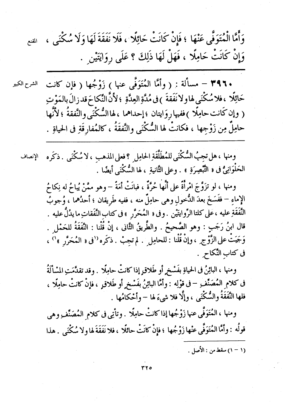 ومنها، المُتَوَفَّى عنها زَوْجُها إذا كانتْ حامِلًا. وتأتِى فى كلامِ المُصَنِّفِ وهى قولُه: وأمَّا المُتَوَفَّى عنْها زَوْجُها؛ فإنْ كانَتْ حائلًا، فلا نَفَقَةَ لها ولا سُكْنَى. هذا