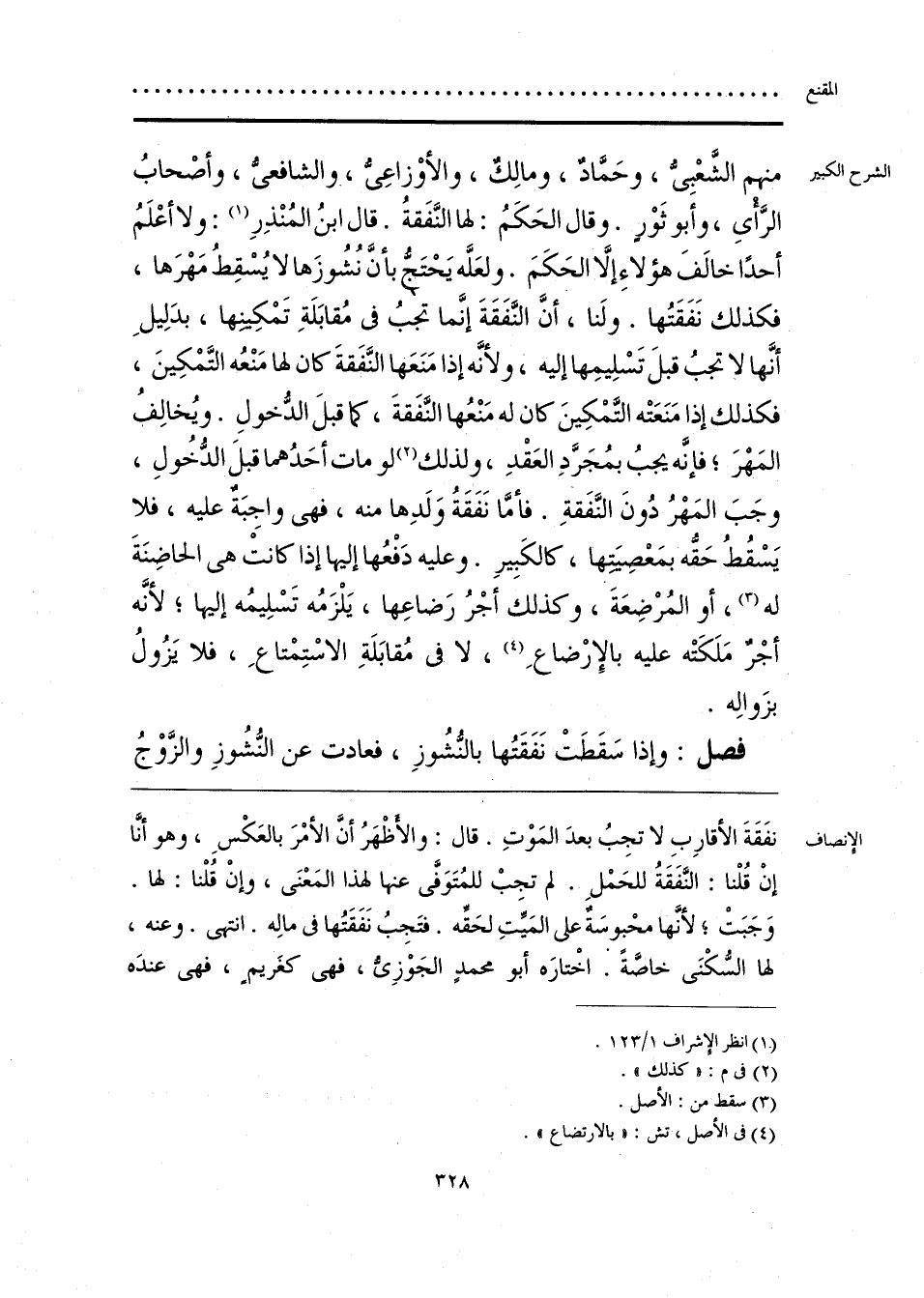 نفَقَةَ الأقارِبِ لا تجِبُ بعدَ المَوْتِ. قال: والأَظْهَرُ أنَّ الأمْرَ بالعَكْسِ، وهو أنَّا إنْ قُلْنا: النَّفَقَةُ للحَمْلِ. لم تجِبْ للمُتَوَفَّى عنها لهذا المَعْنَى، وإنْ قُلْنا: لها. وَجَبَتْ؛ لأنَّها محْبوسَةٌ على المَيِّتِ لحَقِّه. فتَجِبُ نَفَقَتُها فى مالِه. انتهى. وعنه، لها السُّكْنَى خاصَّةً. اخْتارَه أبو محمدٍ الجَوْزِىُّ، فهى كغَريمٍ، فهى عندَه