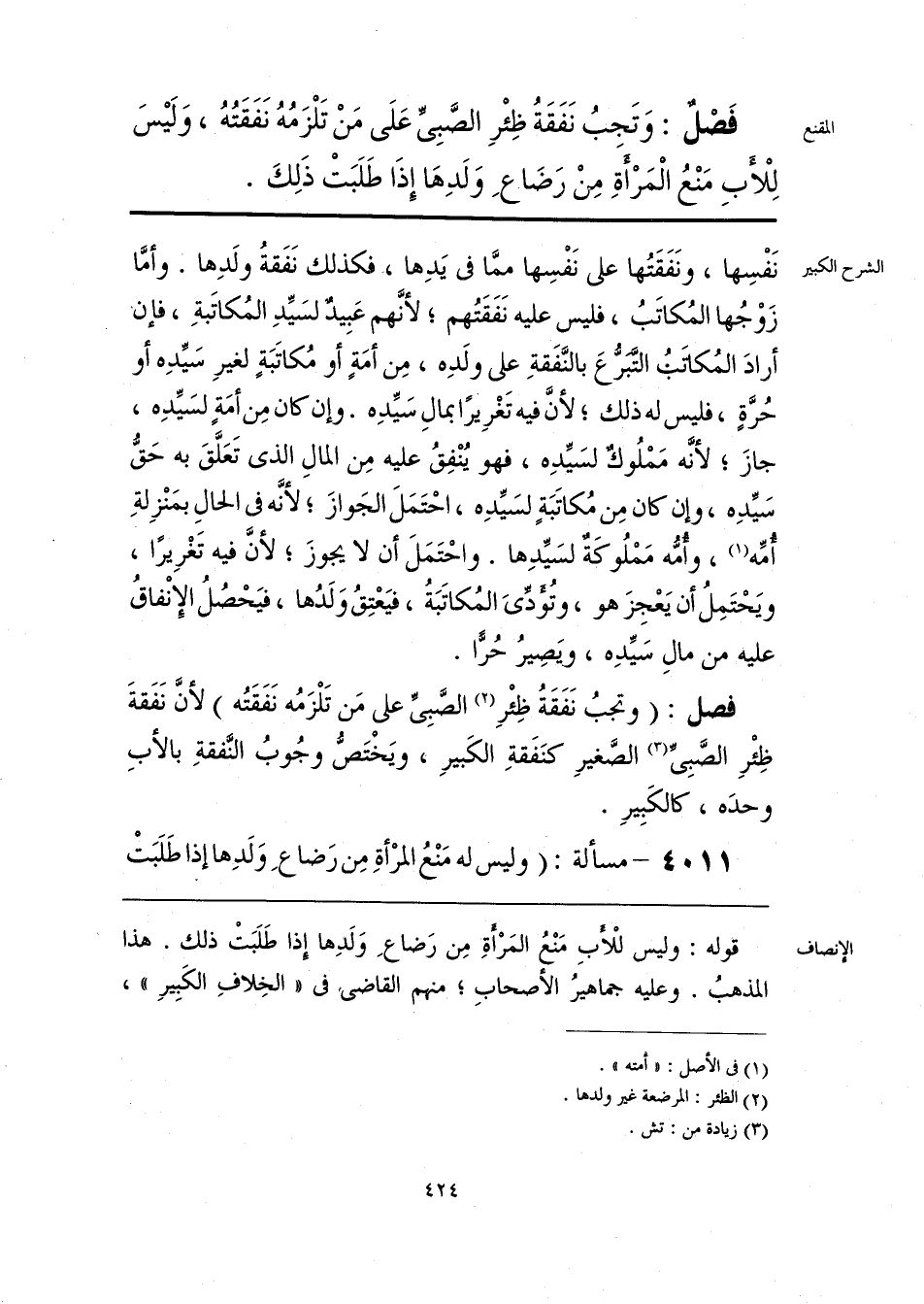 فَصْلٌ: وَتَجِبُ نَفَقَةُ ظِئْرِ الصَّبِىِّ عَلَى مَنْ تَلْزَمُهُ نَفَقَتُهُ، وَلَيْسَ لِلْأَبِ مَنْعُ الْمَرأَةِ مِنْ وَضَاعِ وَلَدِهَا إِذَا طَلَبَتْ ذَلِكَ.