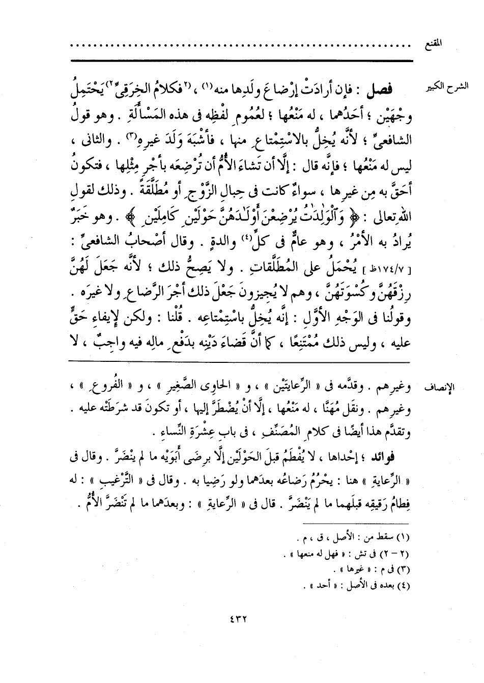 فوائد؛ إحْداها، لا يُفْطَمُ قبلَ الحَوْلَيْن إلَّا برِضَى أبَوَيْه ما لم ينْضَرَّ. وقال فى «الرِّعايَةِ» هنا: يحْرُمُ رَضاعُه بعدَهما ولو رَضِيا به. وقال فى «التَّرْغيبِ»: له فِطامُ رَقيقِه قبلَهما ما لم يَنْضَرَّ. قال فى «الرِّعايَةِ»: وبعدَهما ما لم تَنْضَرَّ الأُمُّ.